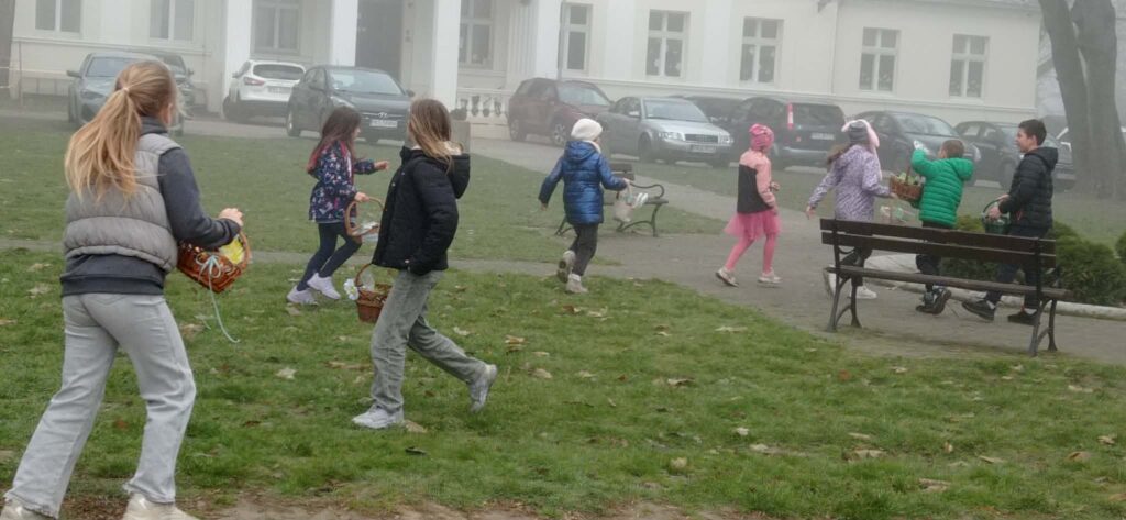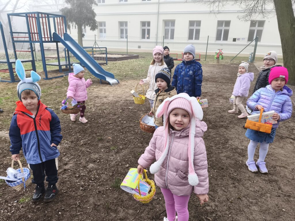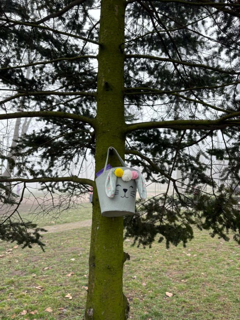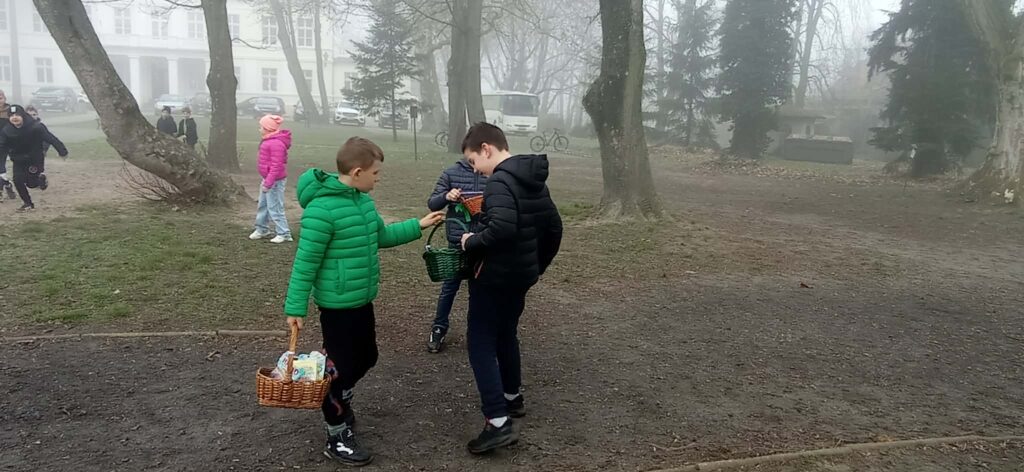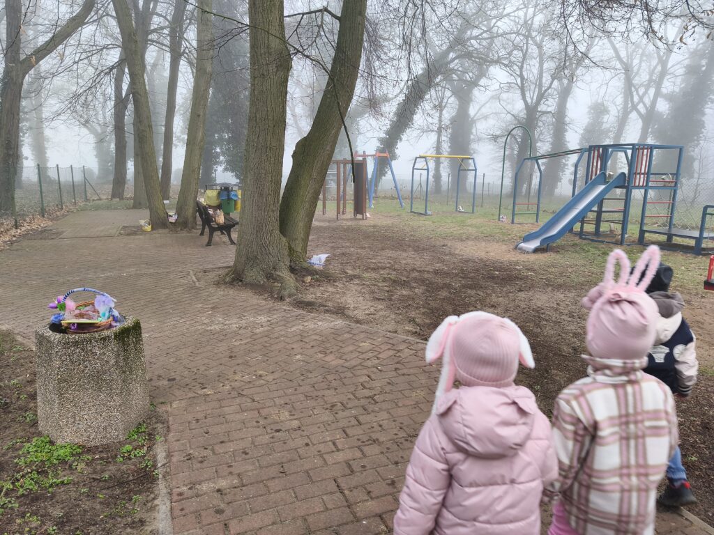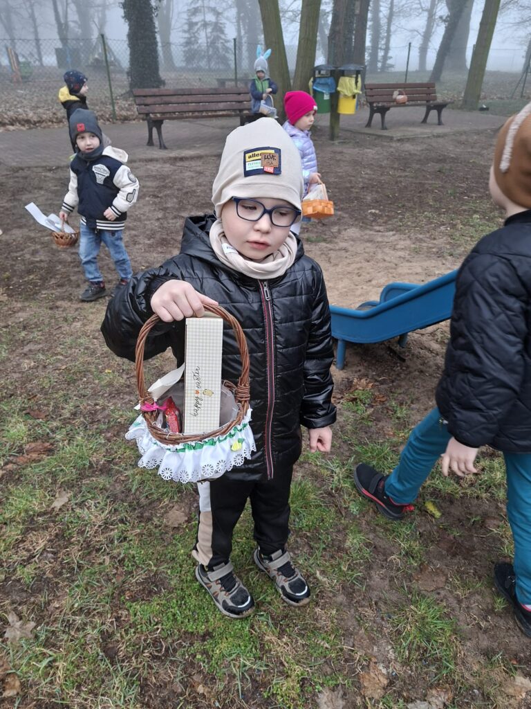 W naszym szkolnym parku odbyło się wielkie poszukiwanie koszyczków zostawionych przez wielkanocnego Zajączka.
