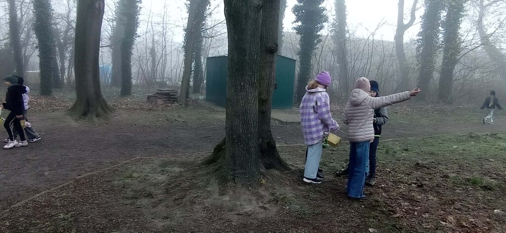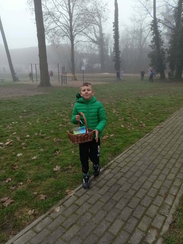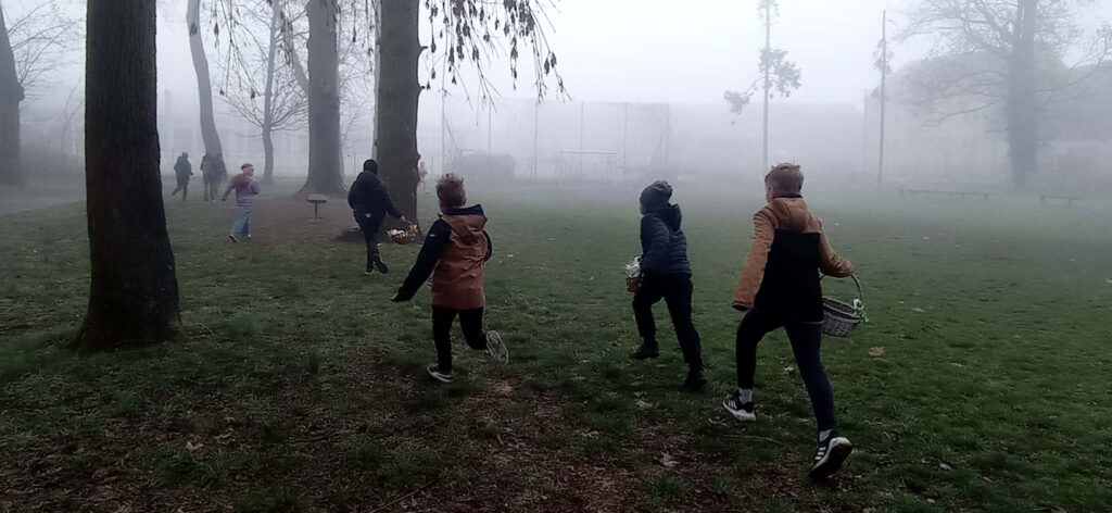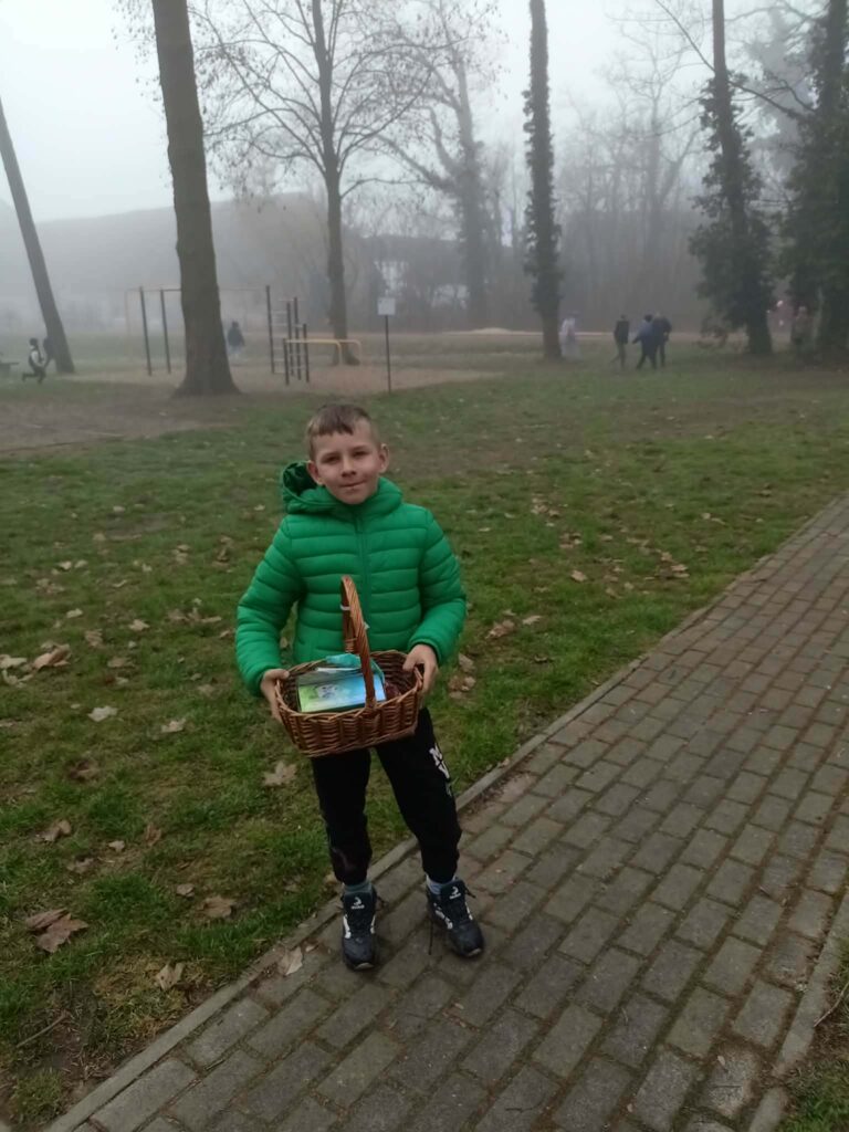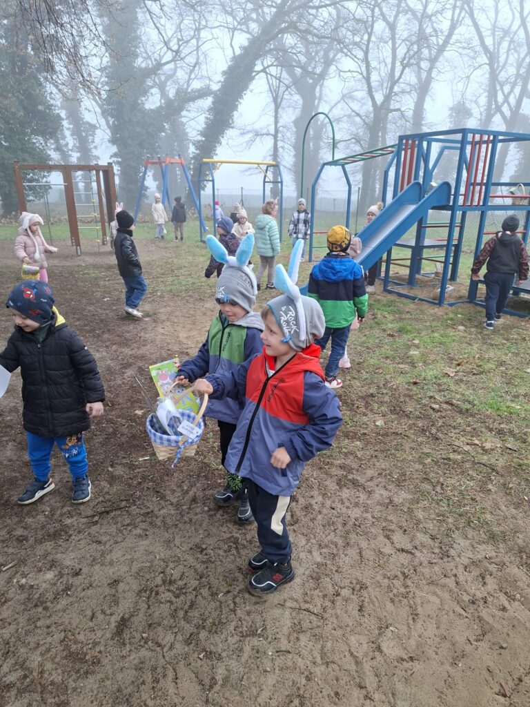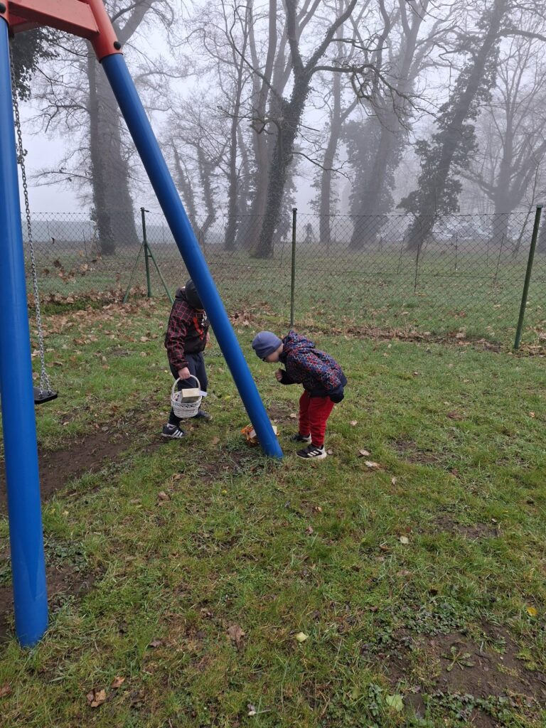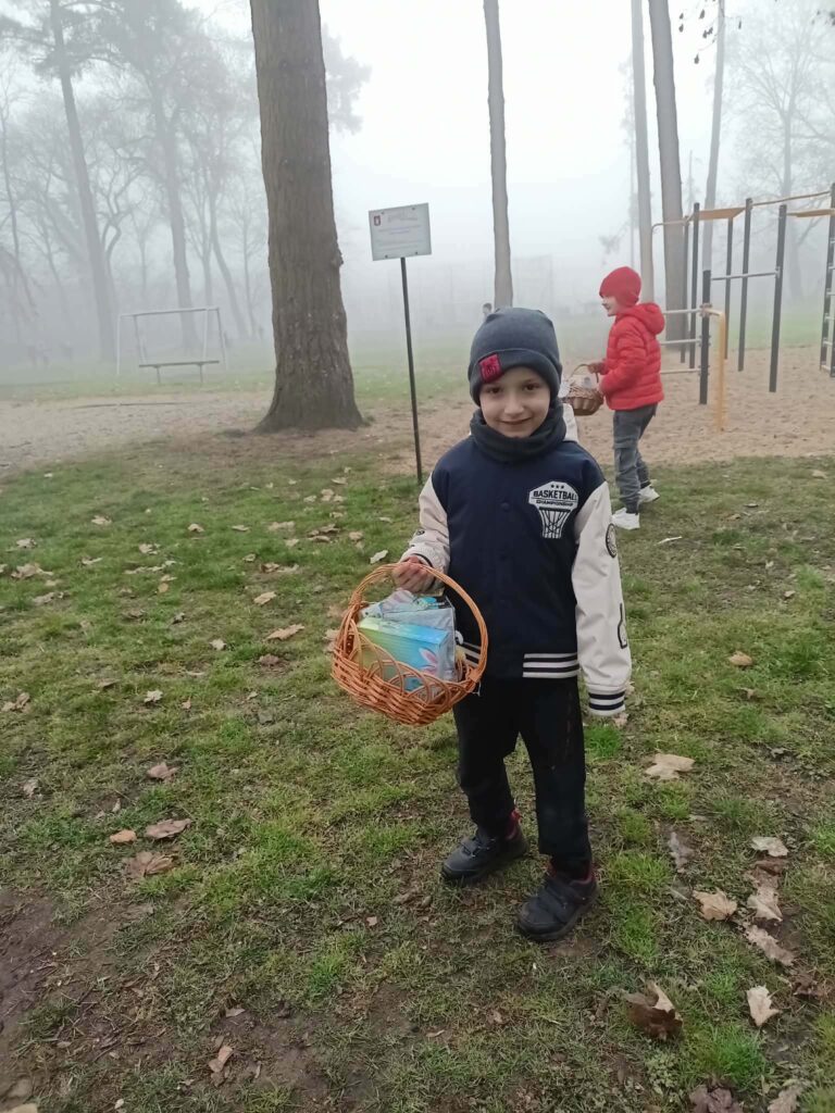 W naszym szkolnym parku odbyło się wielkie poszukiwanie koszyczków zostawionych przez wielkanocnego Zajączka.