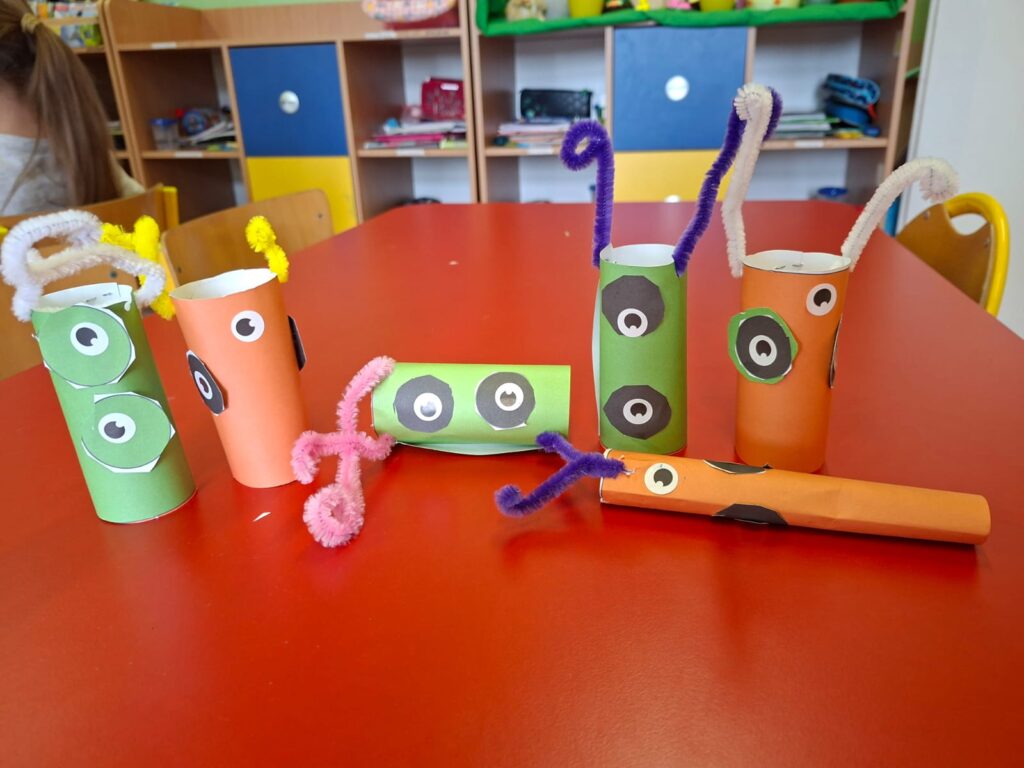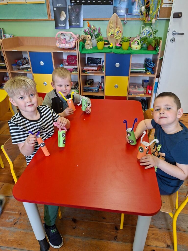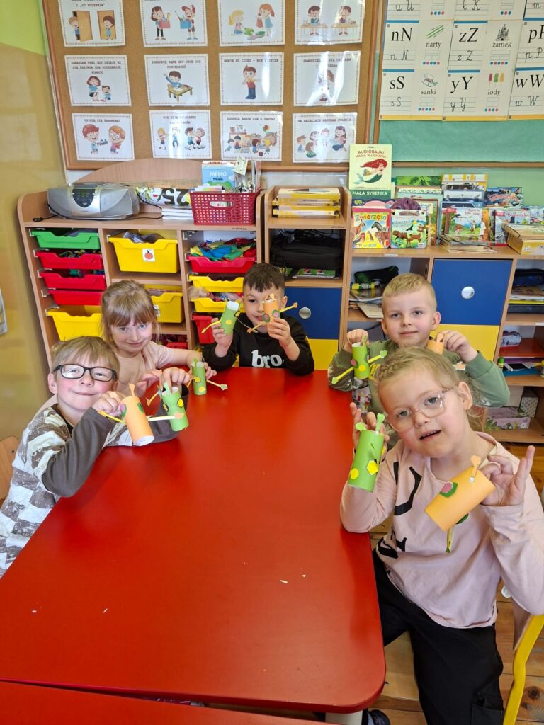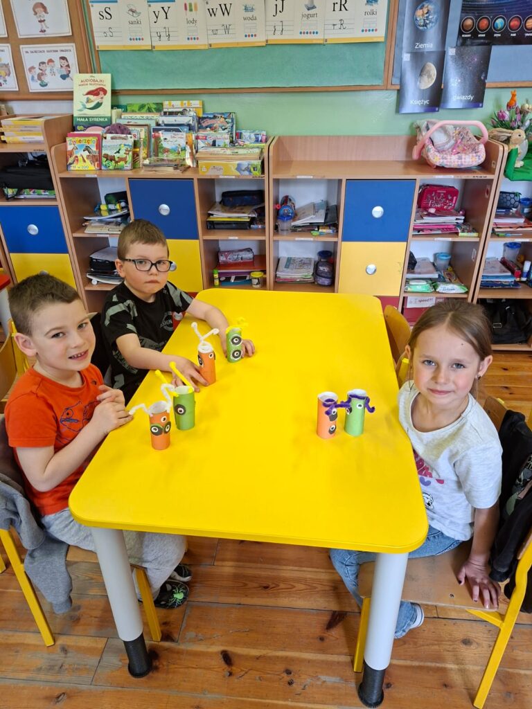 Grupa „Motylki” wykonała pracę plastyczną „Przybysze z obcej galaktyki”, rozwijając wyobraźnię i kreatywność.