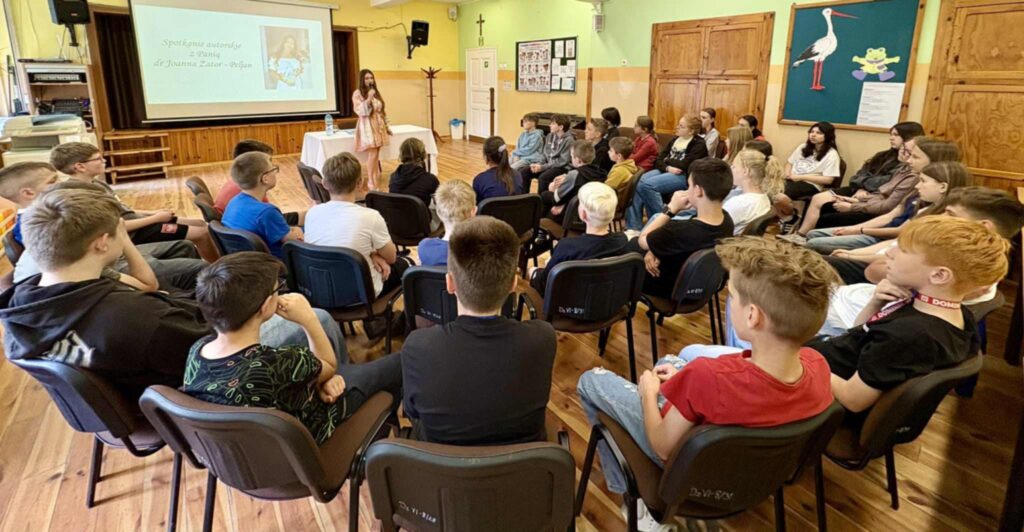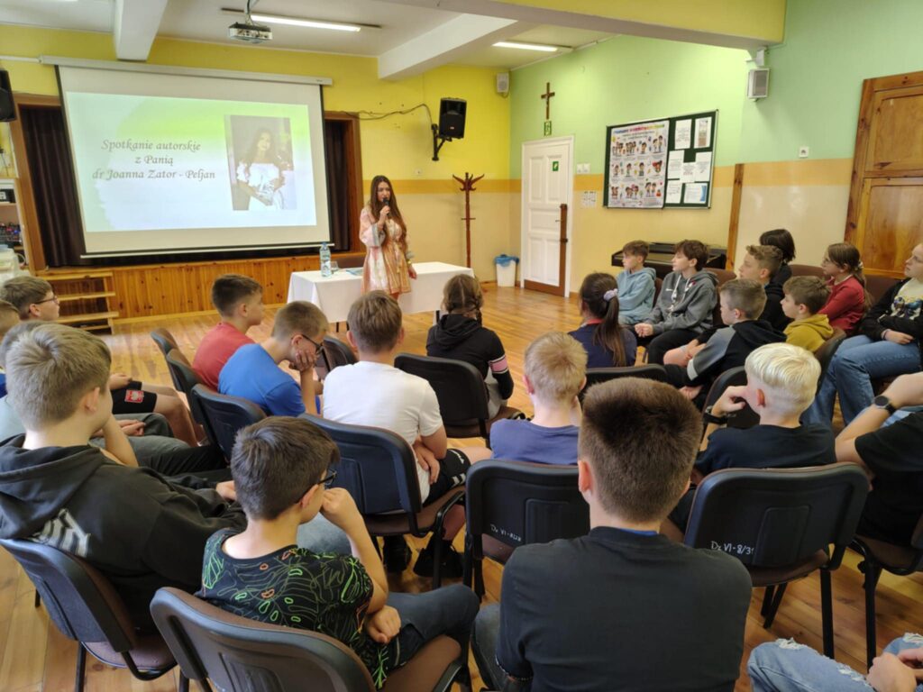 W dniu 10 czerwca 2025r. odbyło się spotkanie autorskie z Panią dr Joanną Zatora-Peljan, autorkę książki „Magiczna kraina Podszeptu”.  W spotkaniu uczestniczyli uczniowie kl. IV – VI.