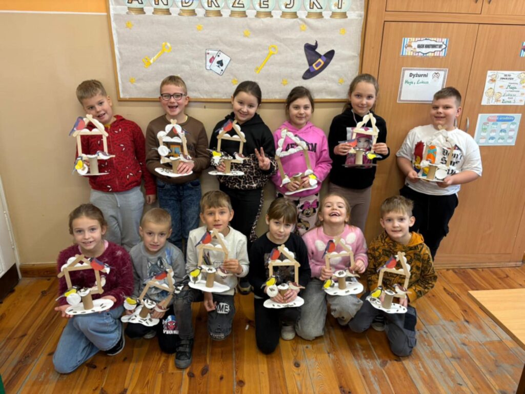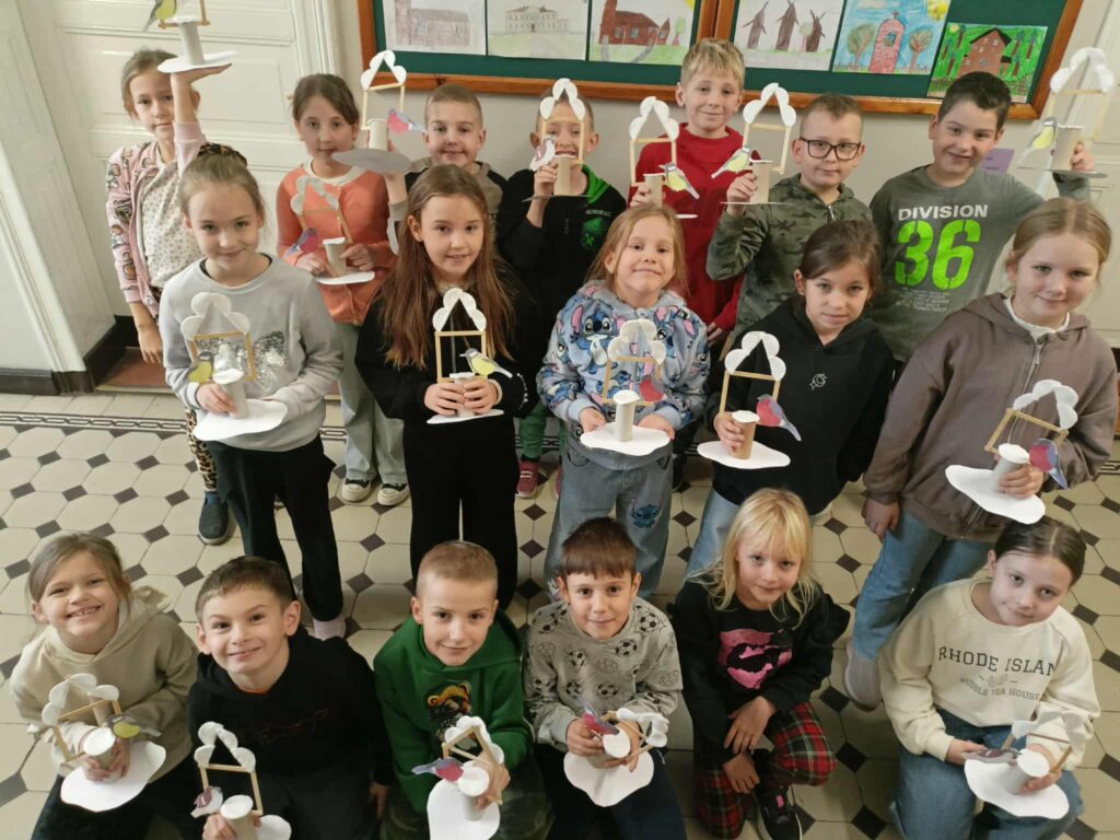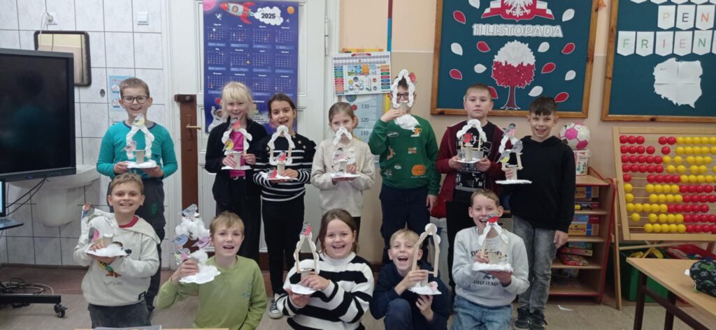 Nasze najmłodsze klasy przygotowały urocze karmniki z patyczków po lodach, które staną się zimową ozdobą szkoły.