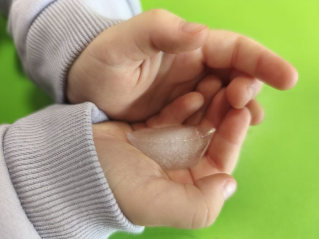 Lodowe eksperymenty w naszej sali 🧊 Sprawdzaliśmy, co sprawia, że lód się topi i jak można go „uwolnić” z zamrożonych skarbów.
