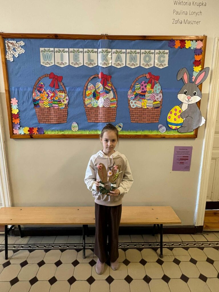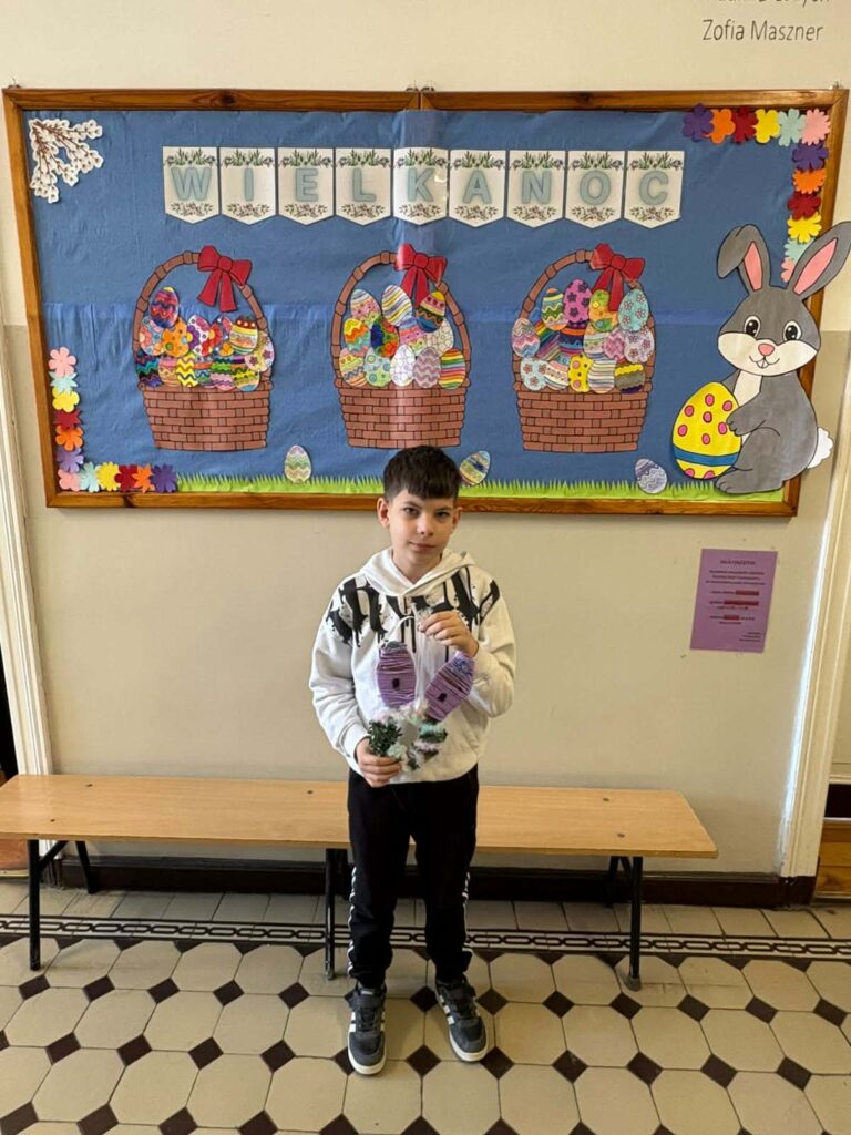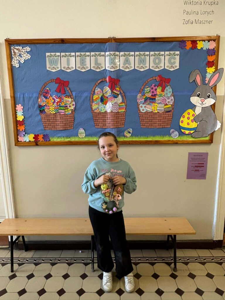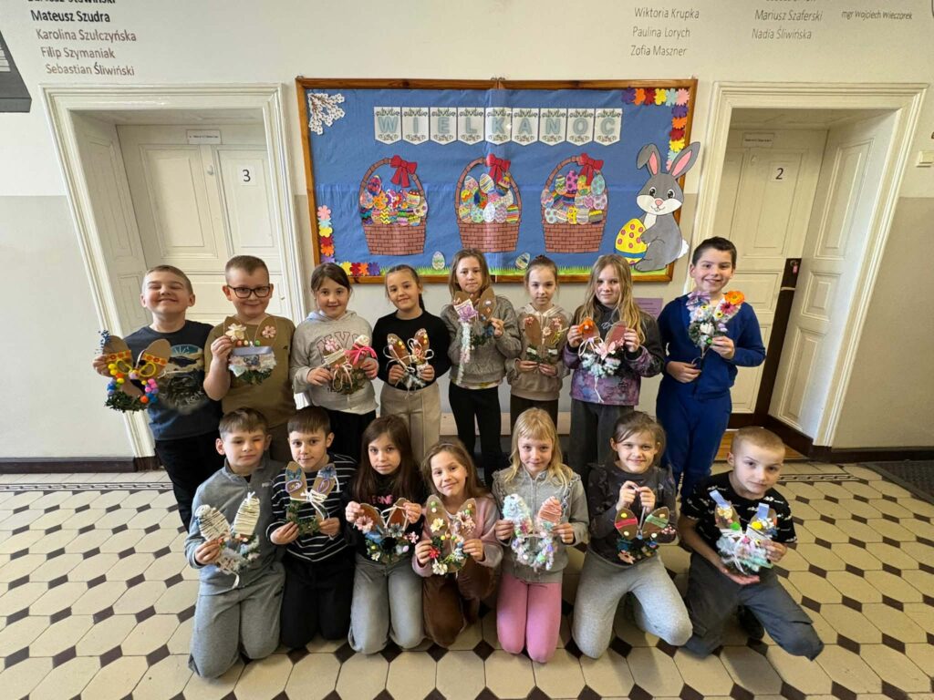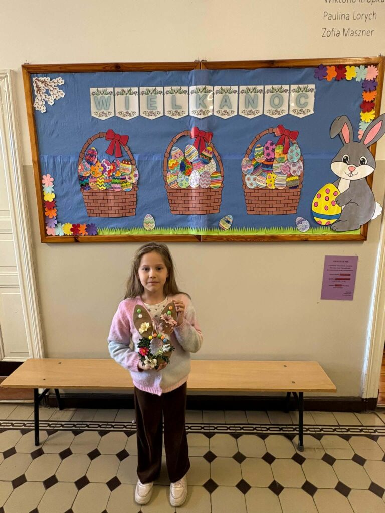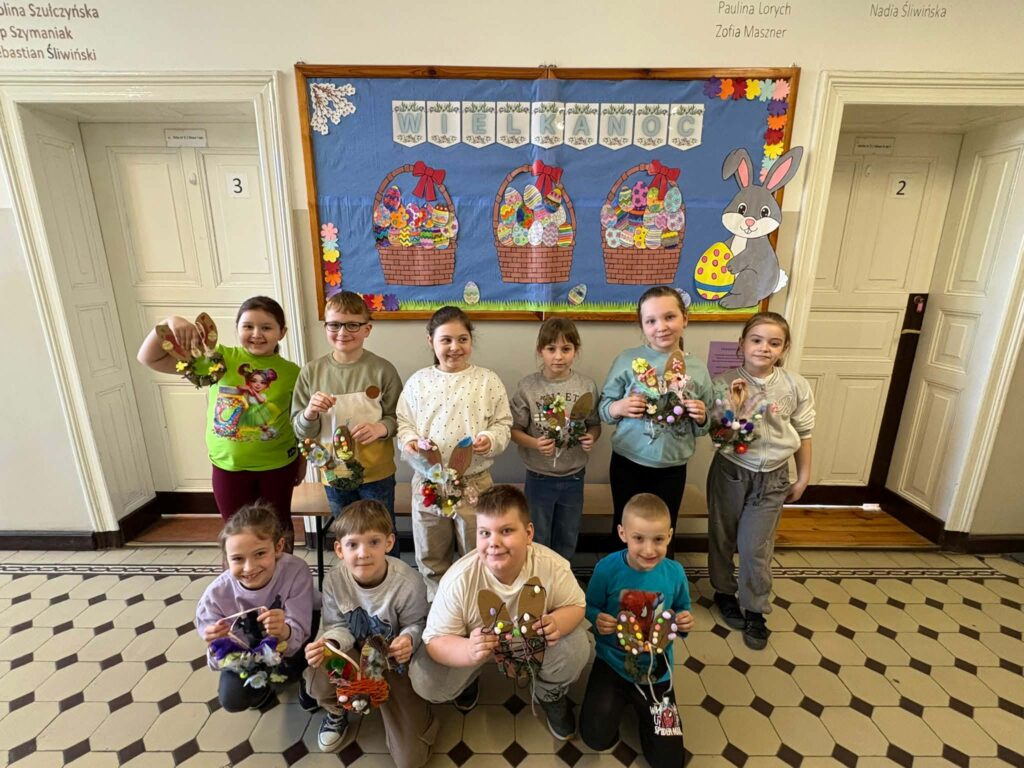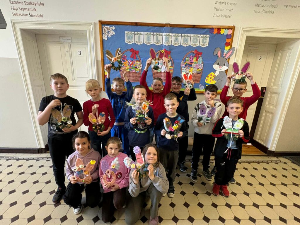 Dzięki kreatywności uczniów i pomysłowości pań nauczycielek powstały unikalne ozdoby, które wprowadzają wiosenny klimat do naszych sal.