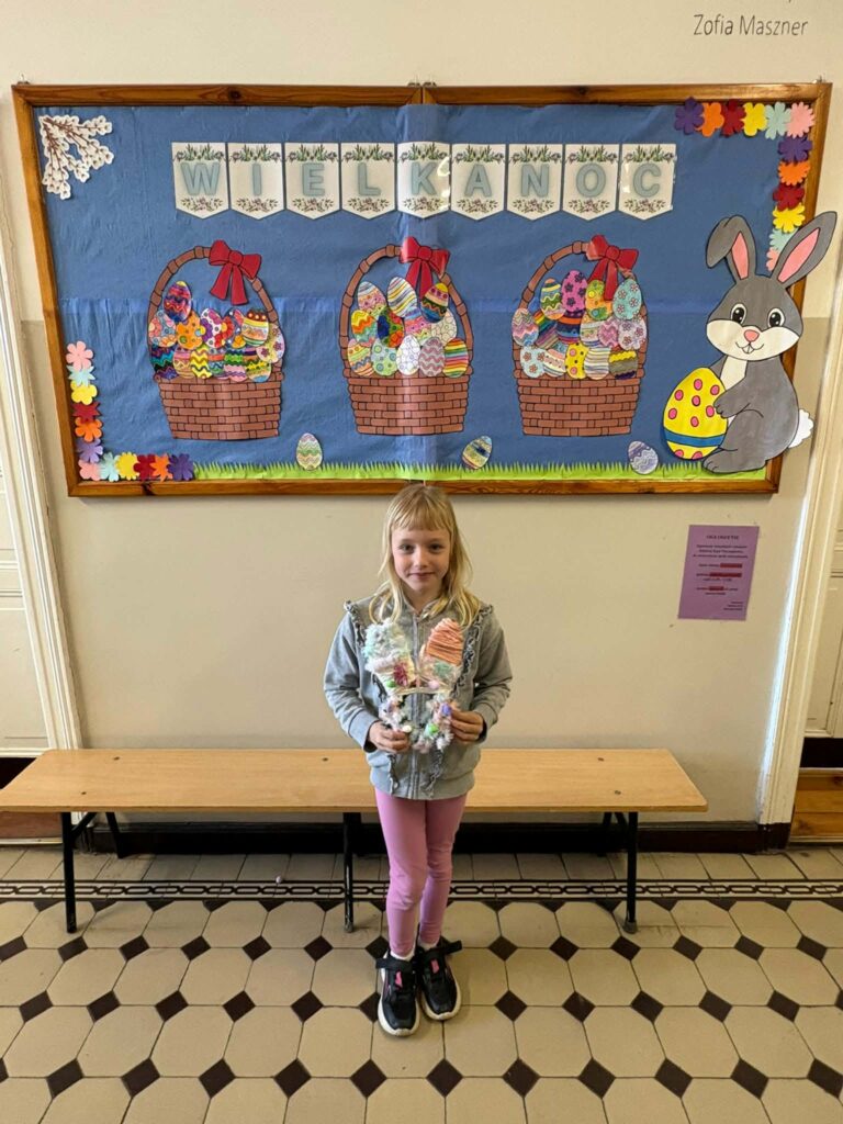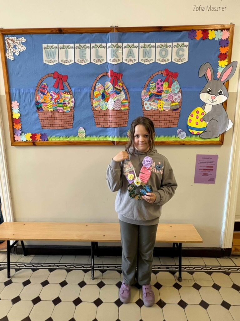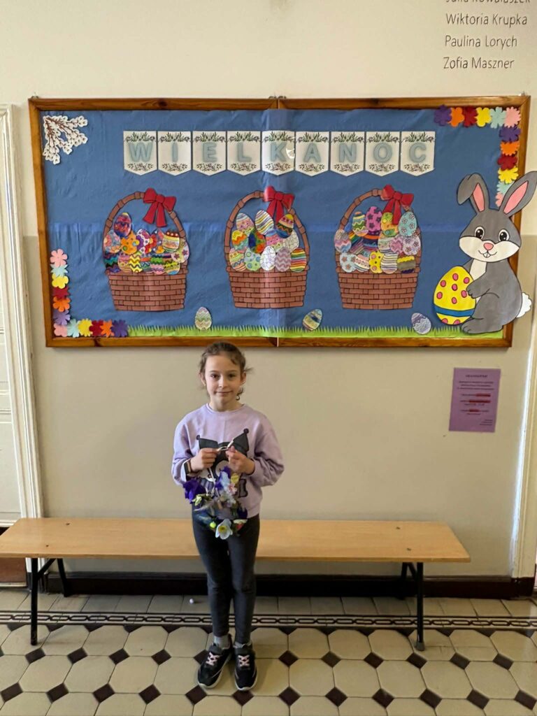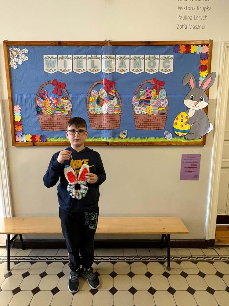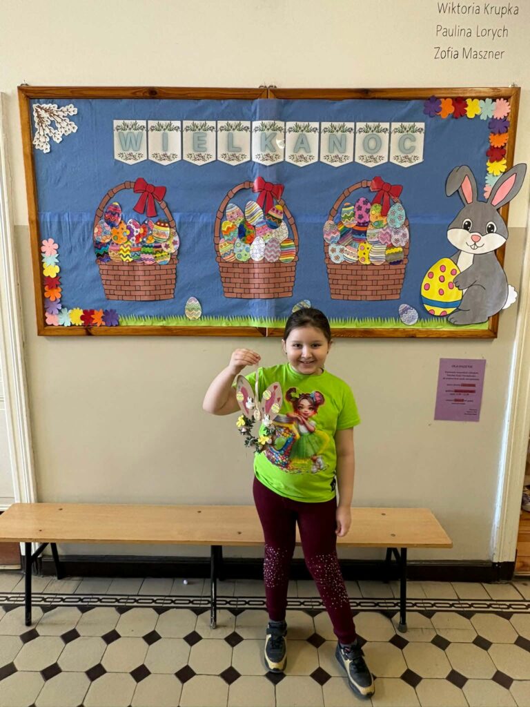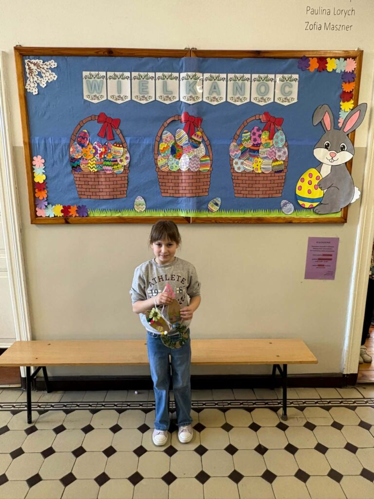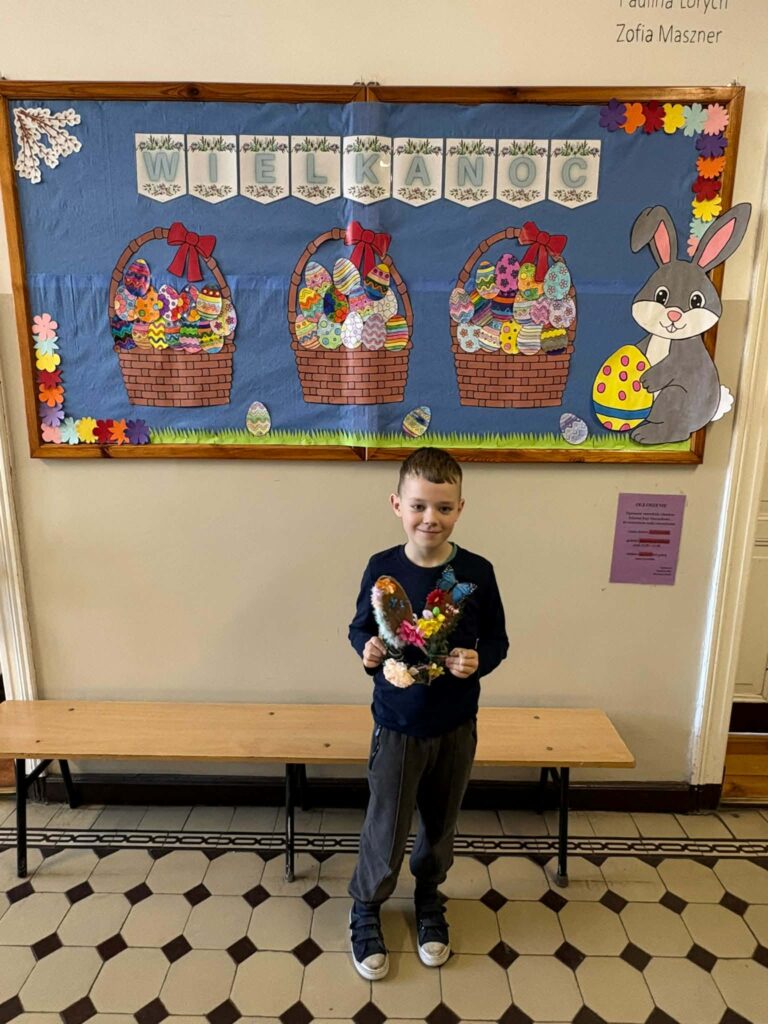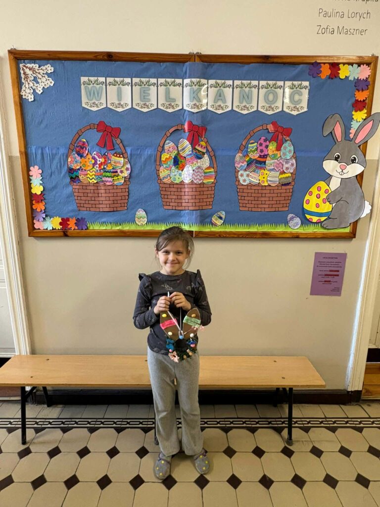 Dzięki kreatywności uczniów i pomysłowości pań nauczycielek powstały unikalne ozdoby, które wprowadzają wiosenny klimat do naszych sal.