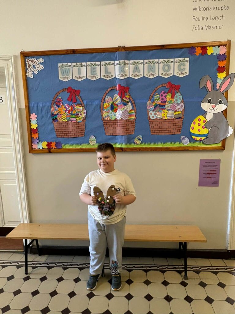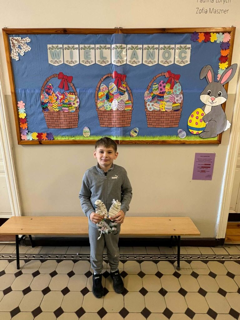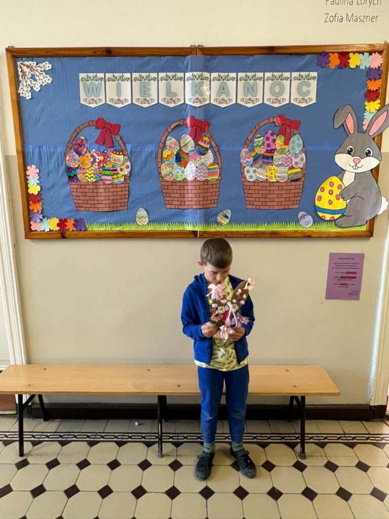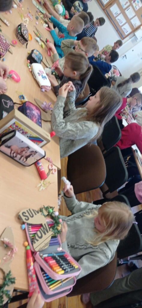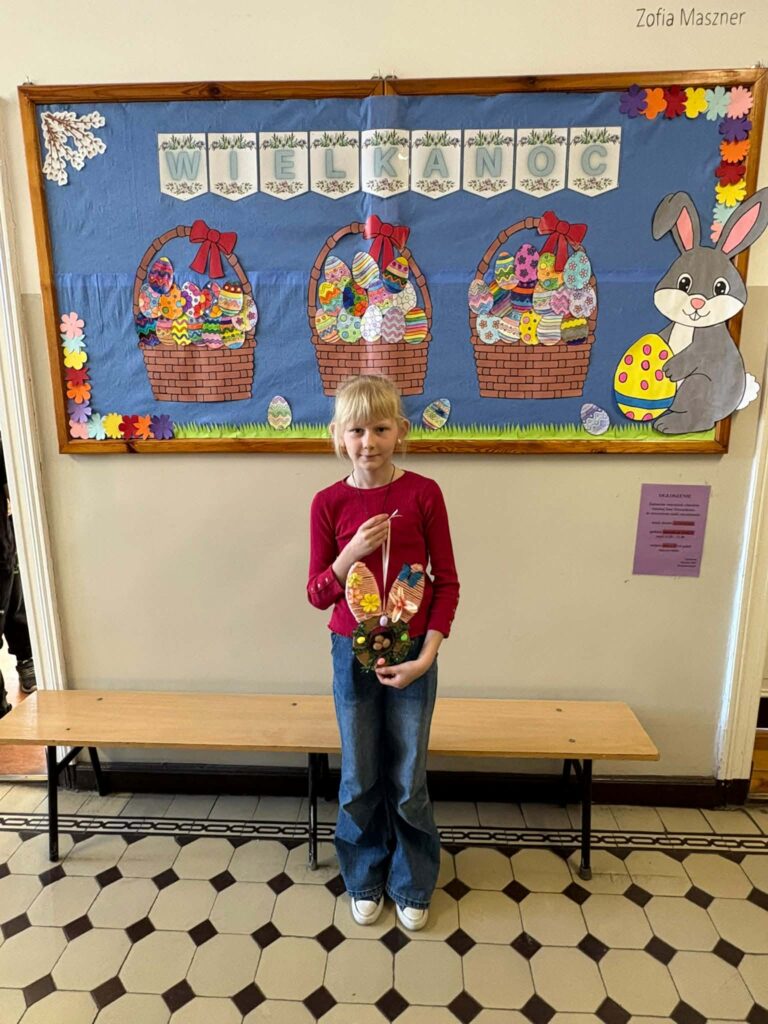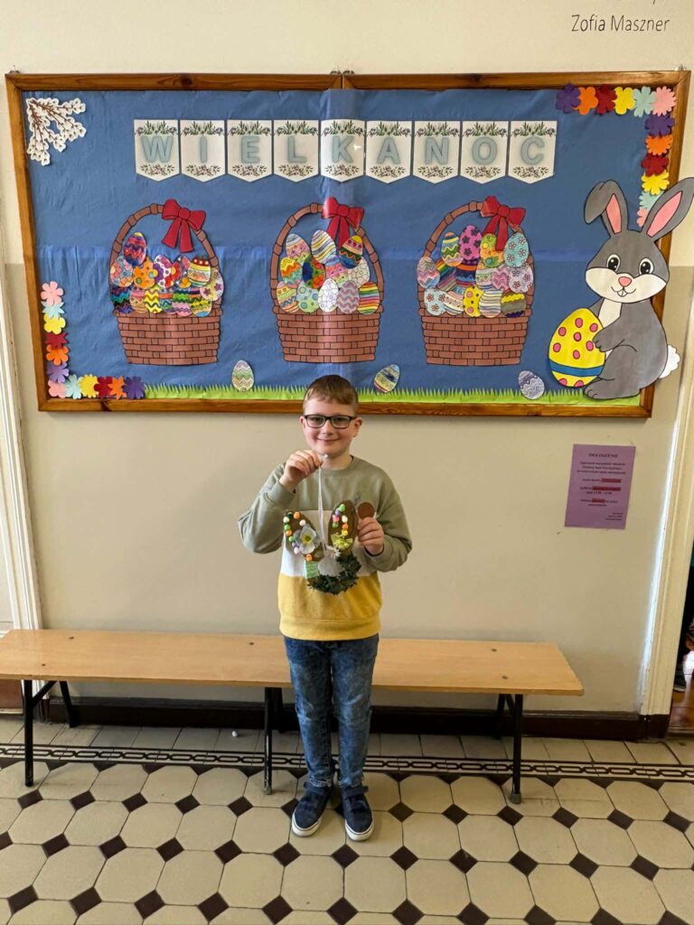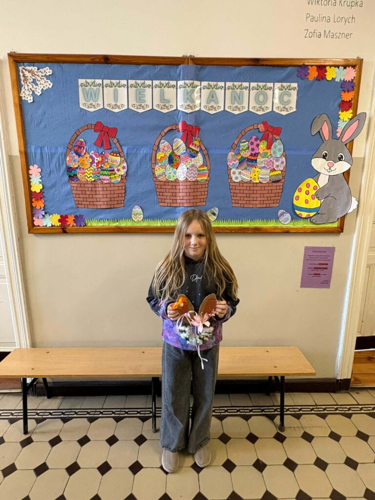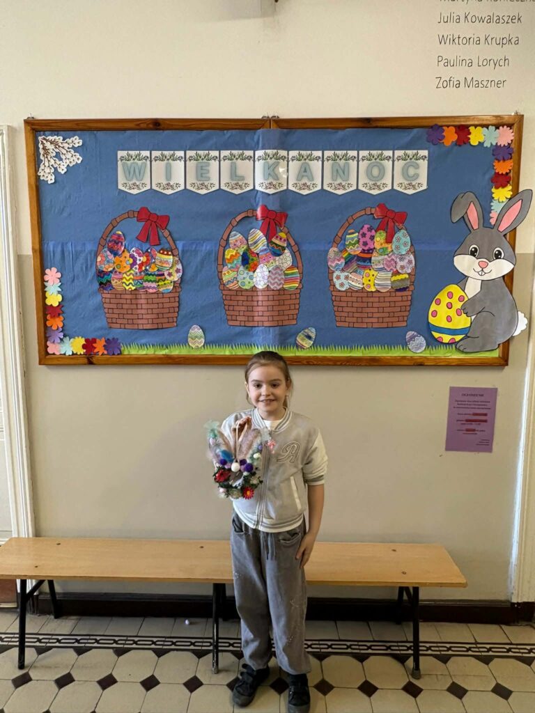 Dzięki kreatywności uczniów i pomysłowości pań nauczycielek powstały unikalne ozdoby, które wprowadzają wiosenny klimat do naszych sal.