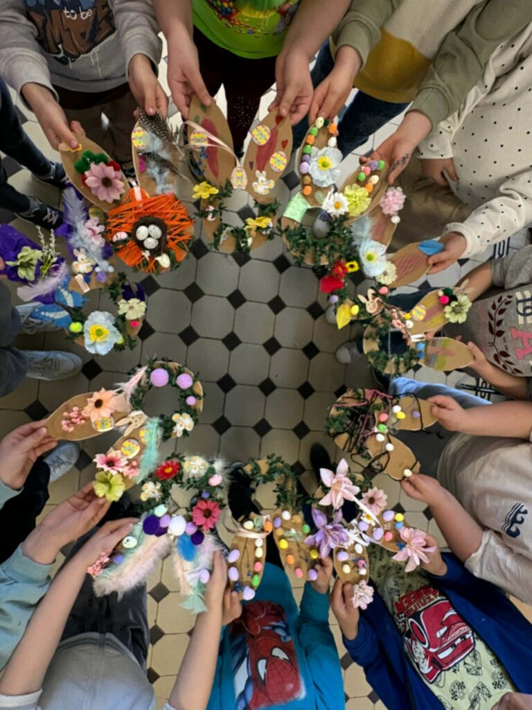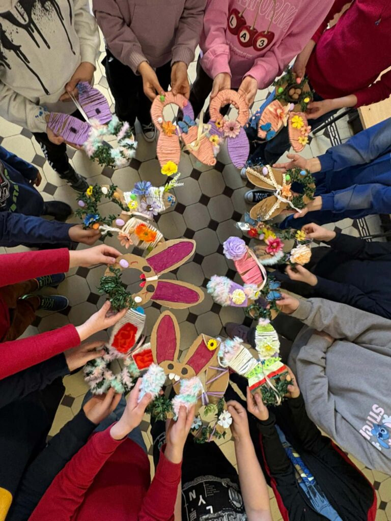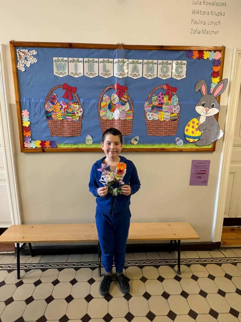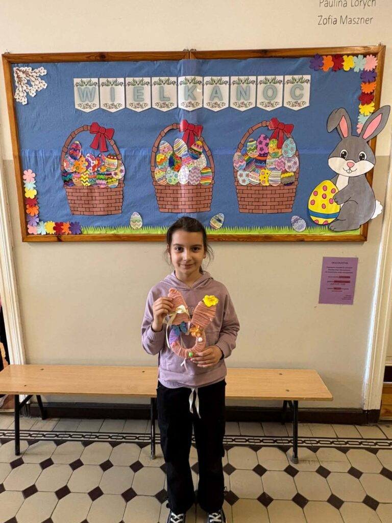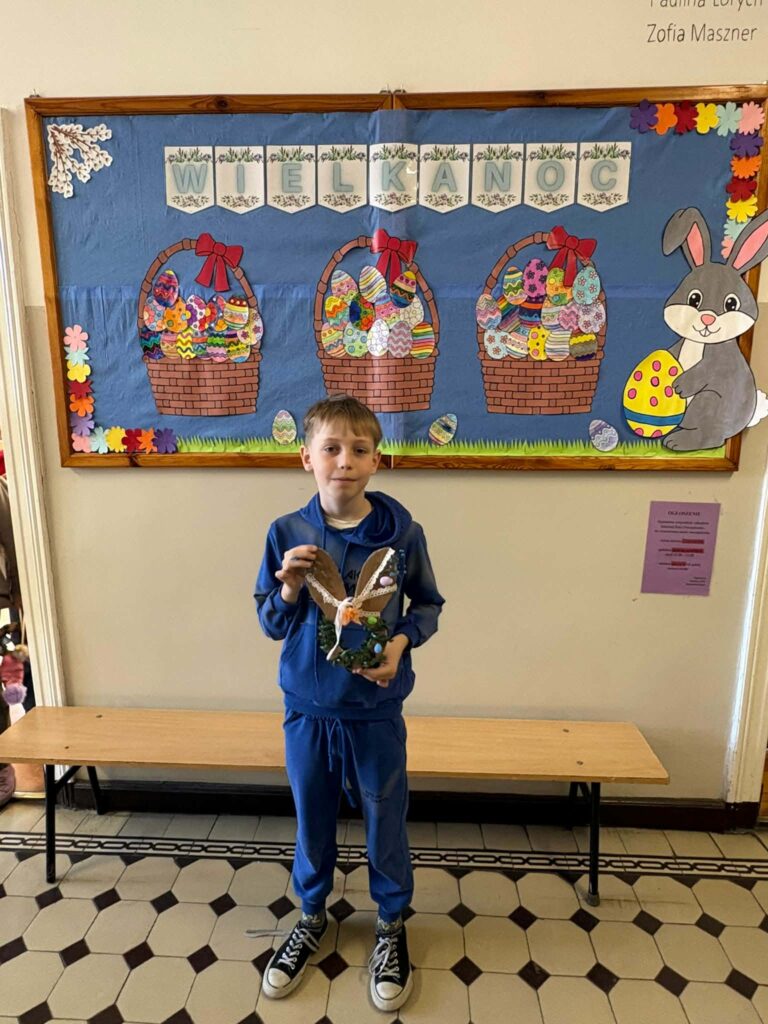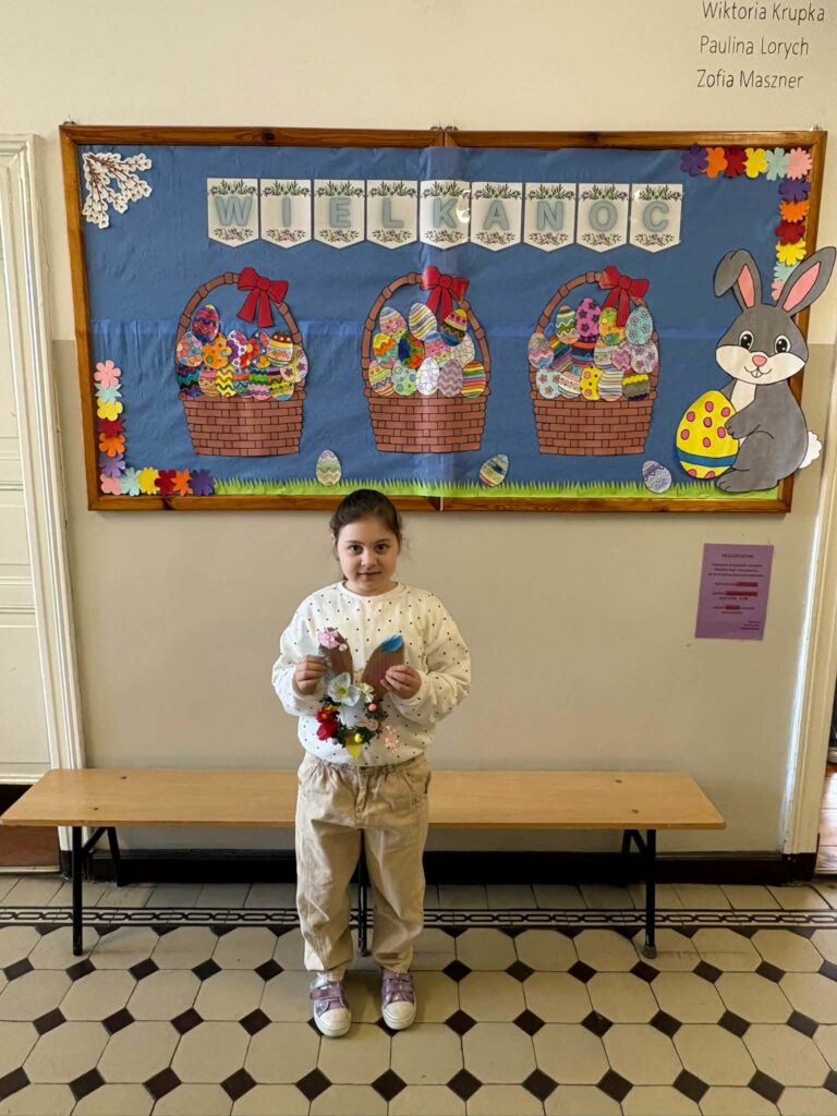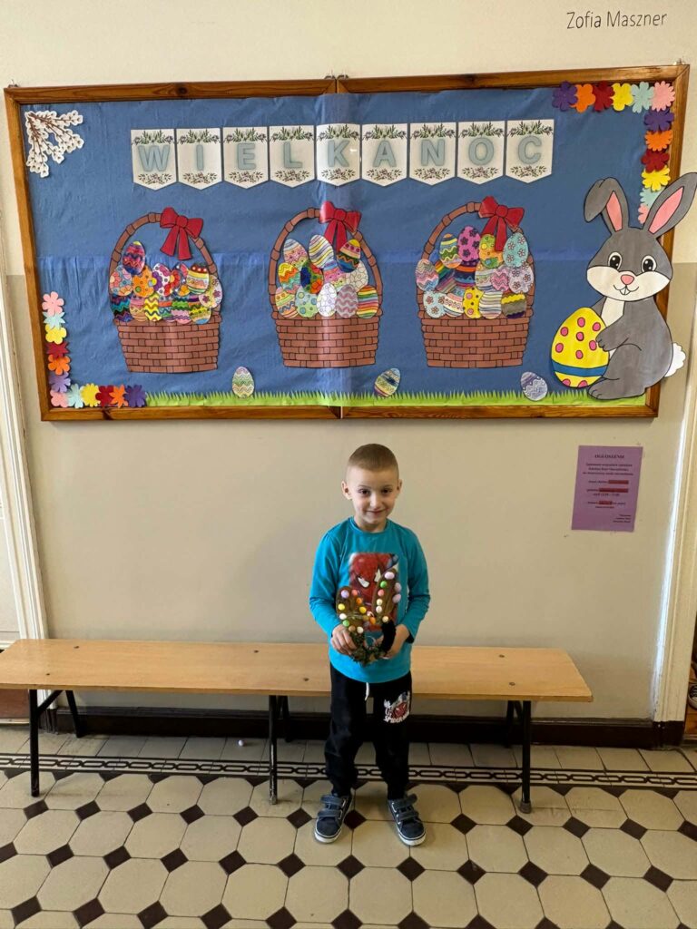Dzięki kreatywności uczniów i pomysłowości pań nauczycielek powstały unikalne ozdoby, które wprowadzają wiosenny klimat do naszych sal.