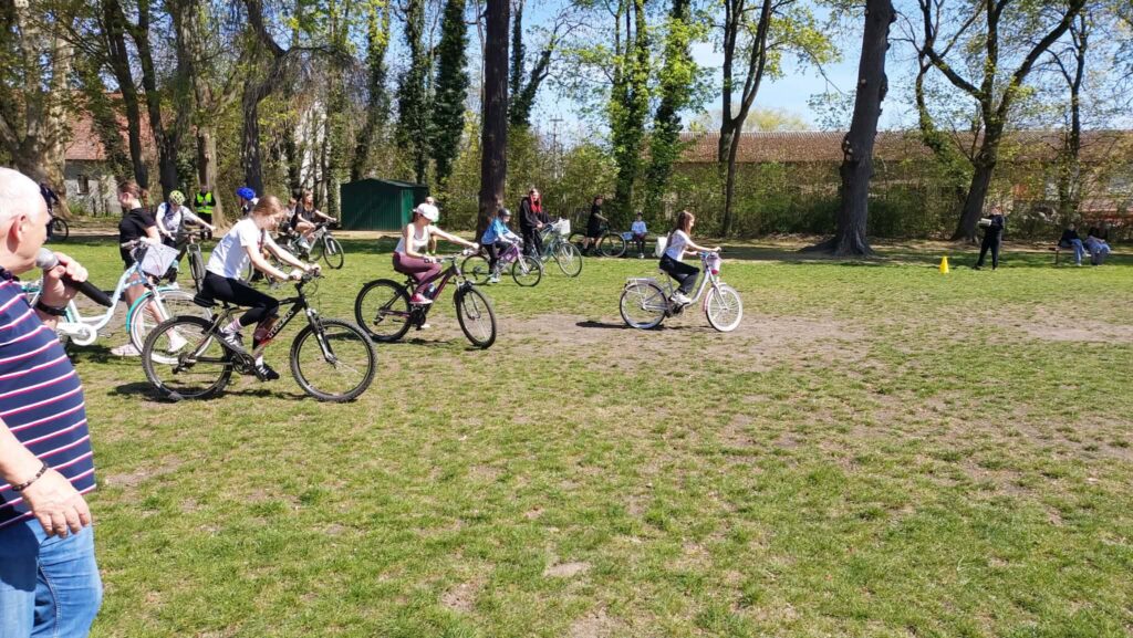 Uczniowie przebyli trasę rowerową, a następnie z dużym zaangażowaniem brali udział w przygotowanych konkurencjach sportowych, dzielnie rywalizując i jednocześnie świetnie się bawiąc. Nie zabrakło radości, uśmiechu oraz pozytywnej energii.