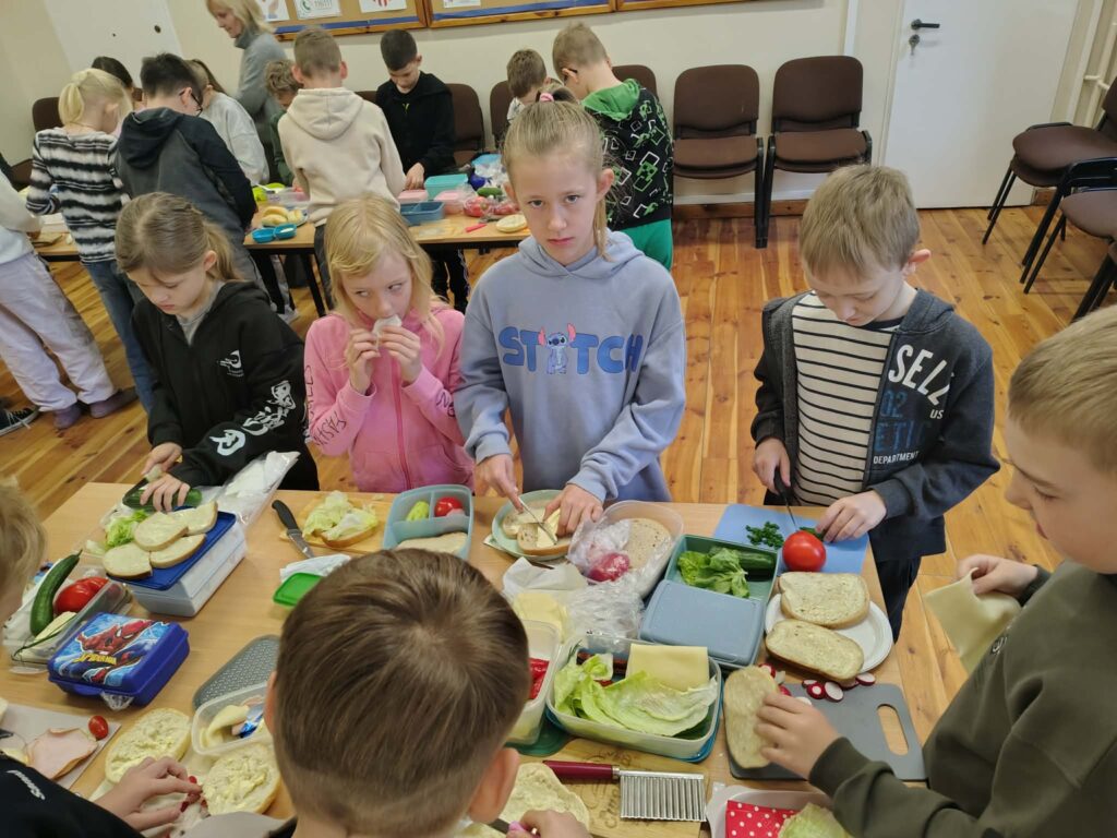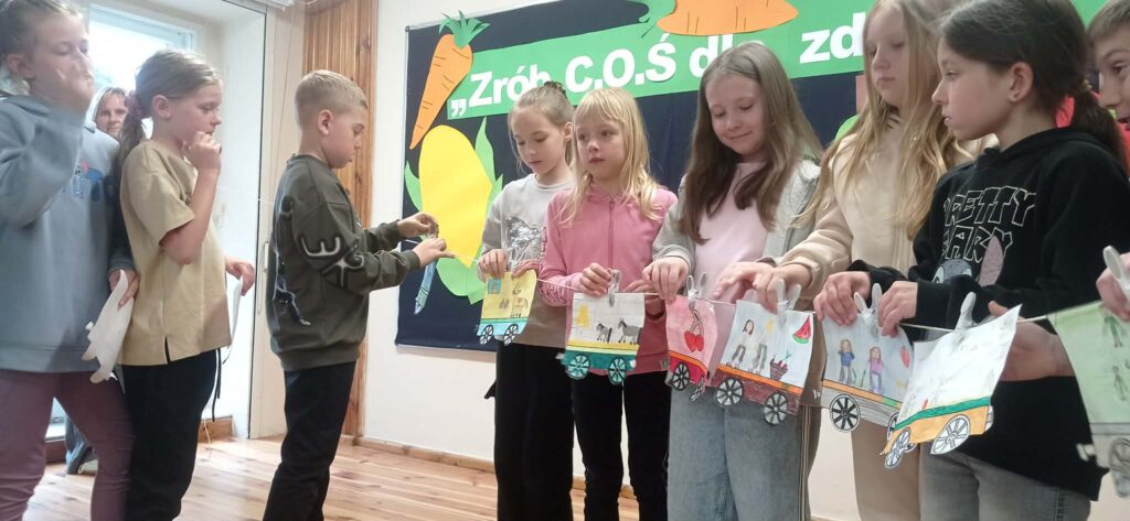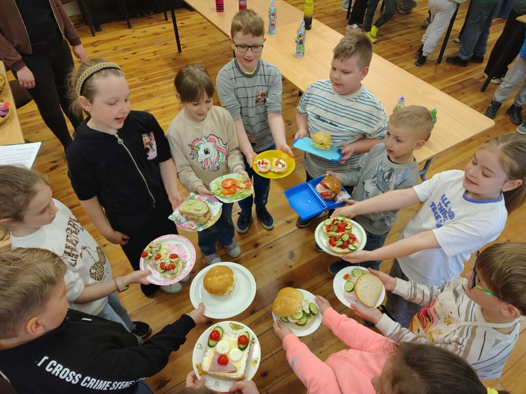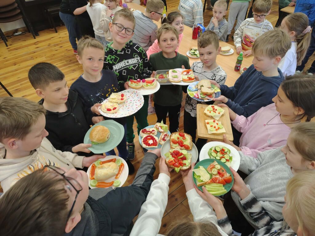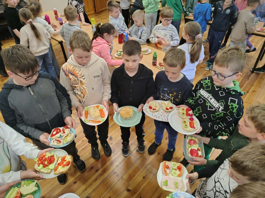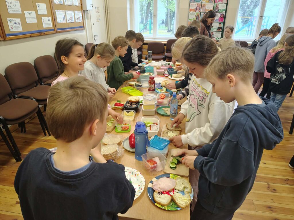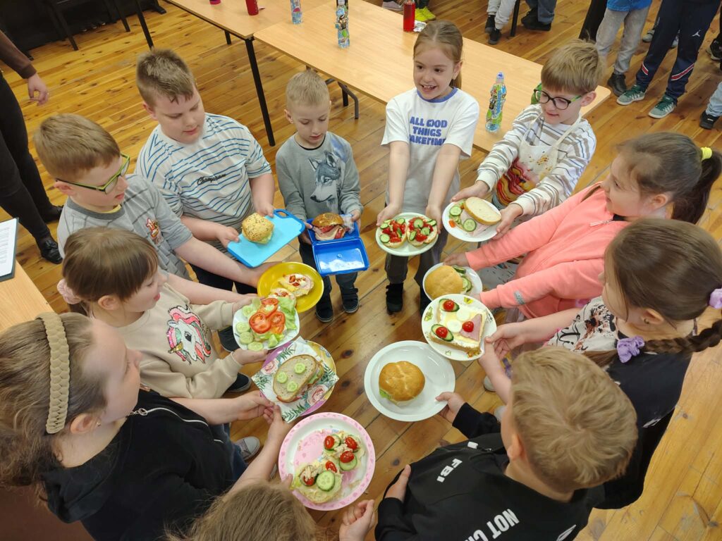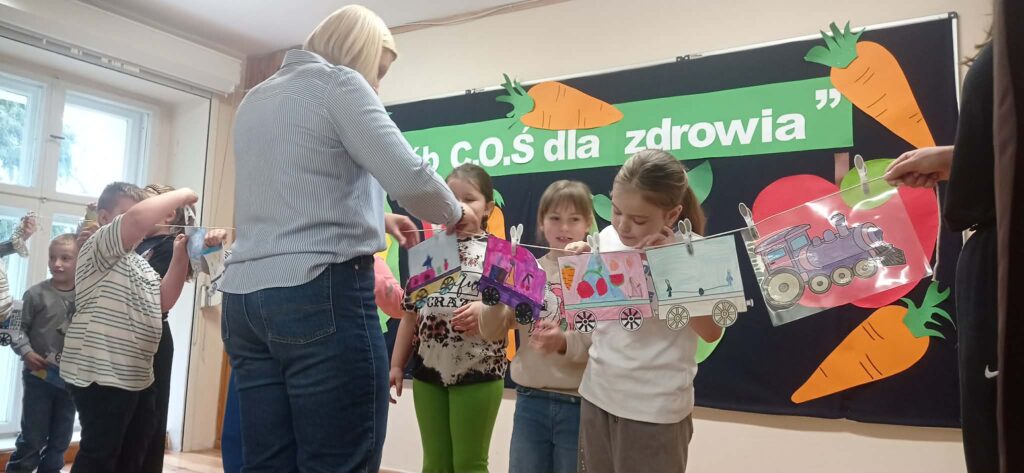 Wydarzenie rozpoczęło się od warsztatów kulinarnych, podczas których dzieci przygotowywały „kanapkowe arcydzieła”. Z kolorowych warzyw i pełnoziarnistego pieczywa powstały zdrowe, fantazyjne posiłki, które uczniowie ze smakiem wspólnie zjedli. Kolejnym punktem programu było tworzenie „Zdrowego Pociągu”. Każdy uczeń otrzymał papierowy wagon, na którym rysował swoje ulubione owoce, warzywa oraz dyscypliny sportowe. Połączone prace stworzyły długi, kolorowy skład promujący aktywny tryb życia. Na zakończenie dzieci wspólnie zaśpiewały piosenkę o zdrowym odżywianiu, udowadniając, że wiedzą, jak dbać o formę.