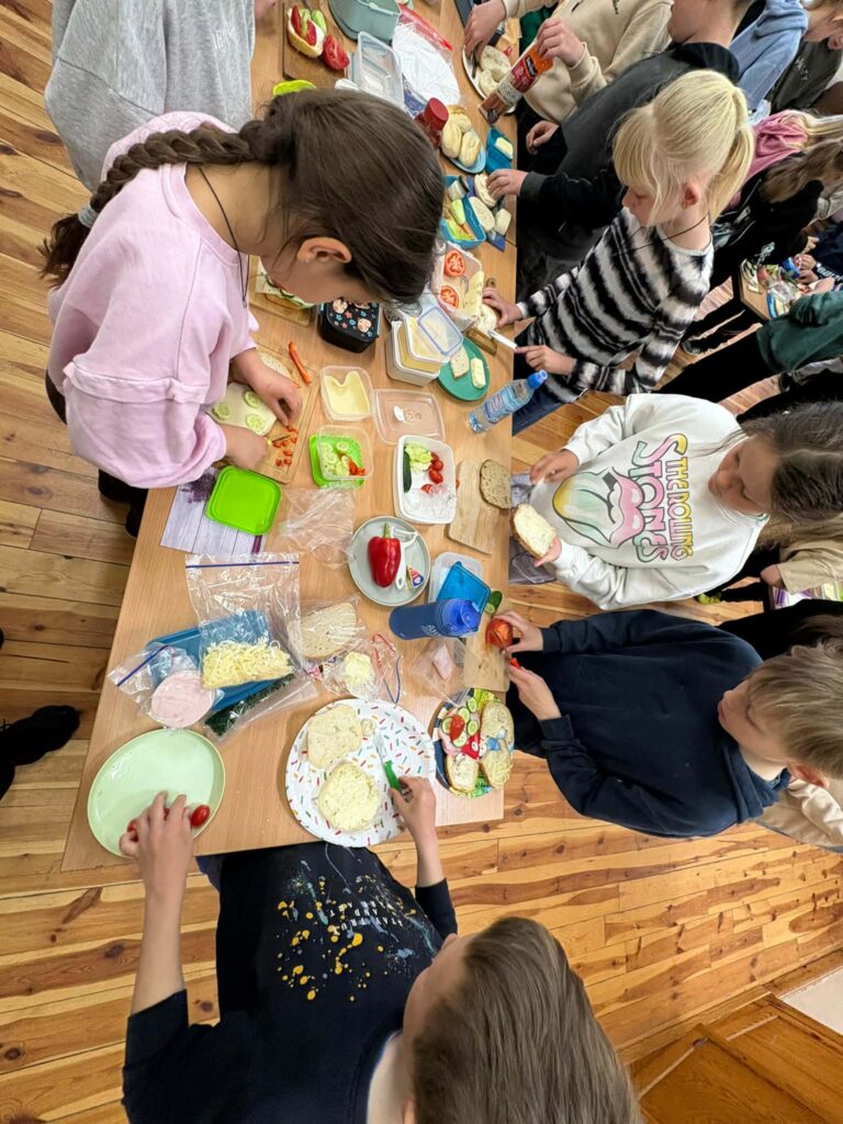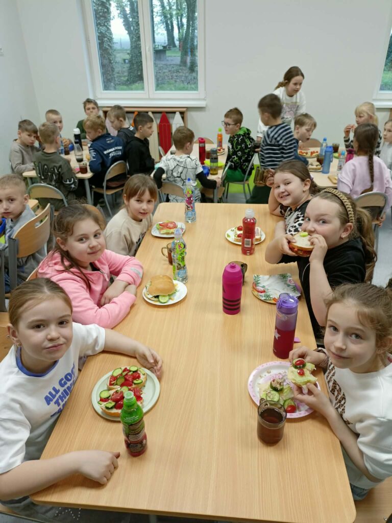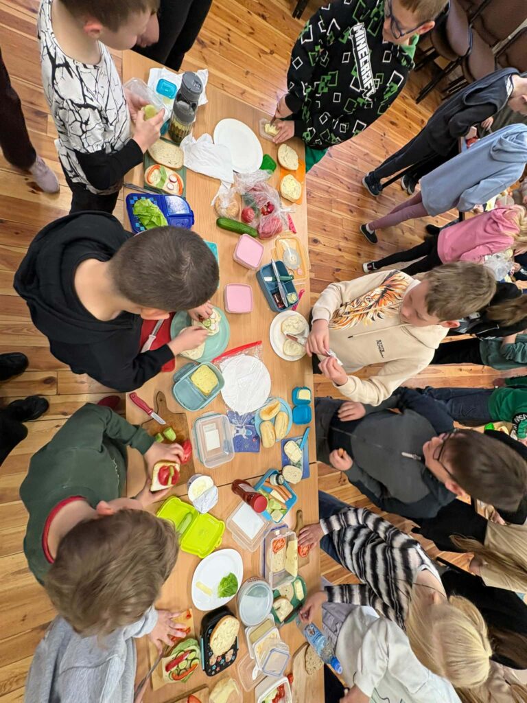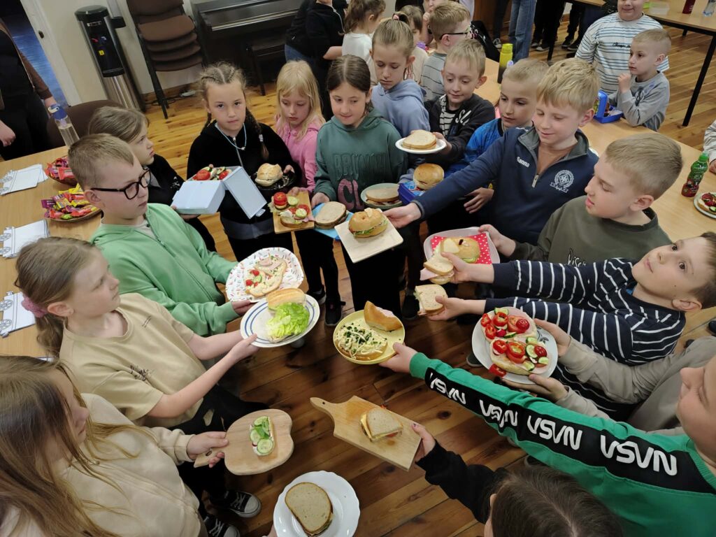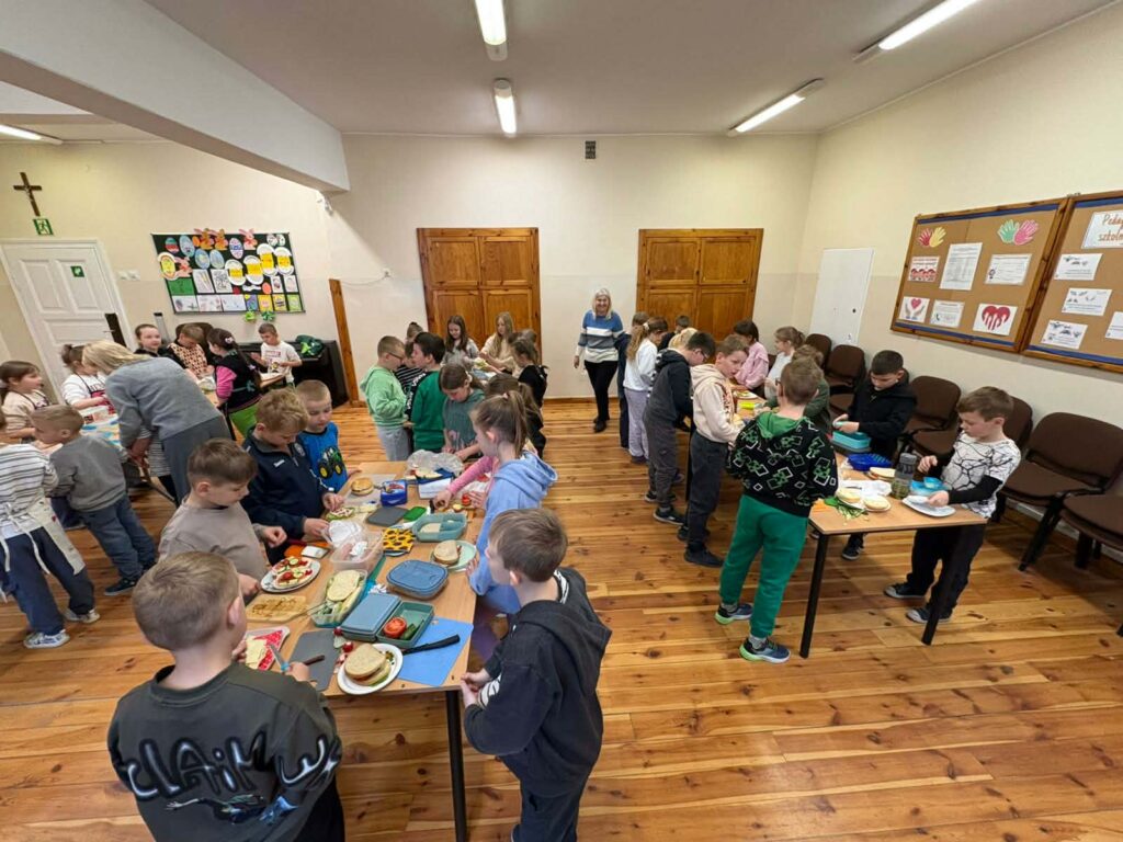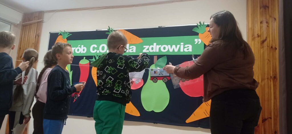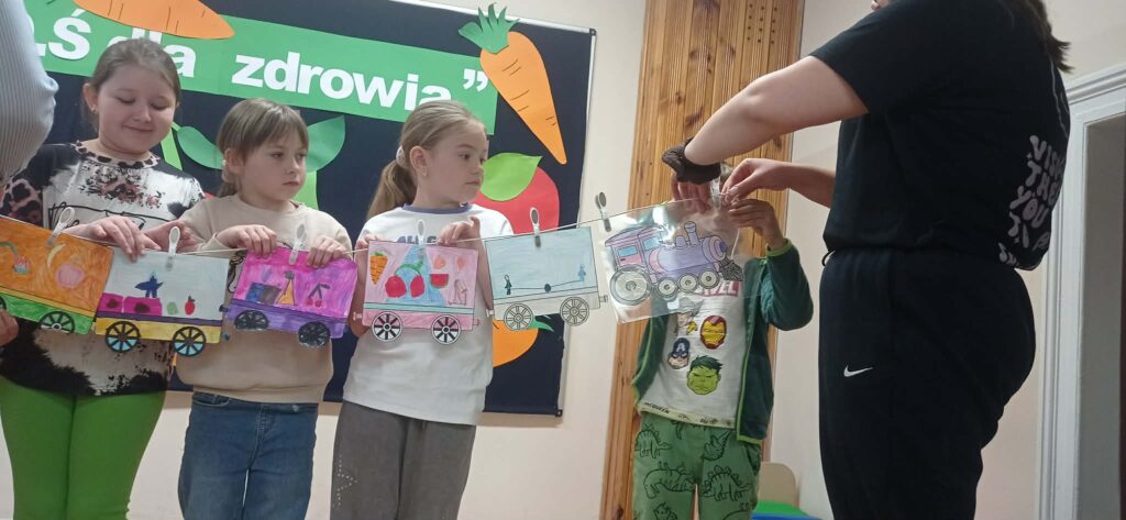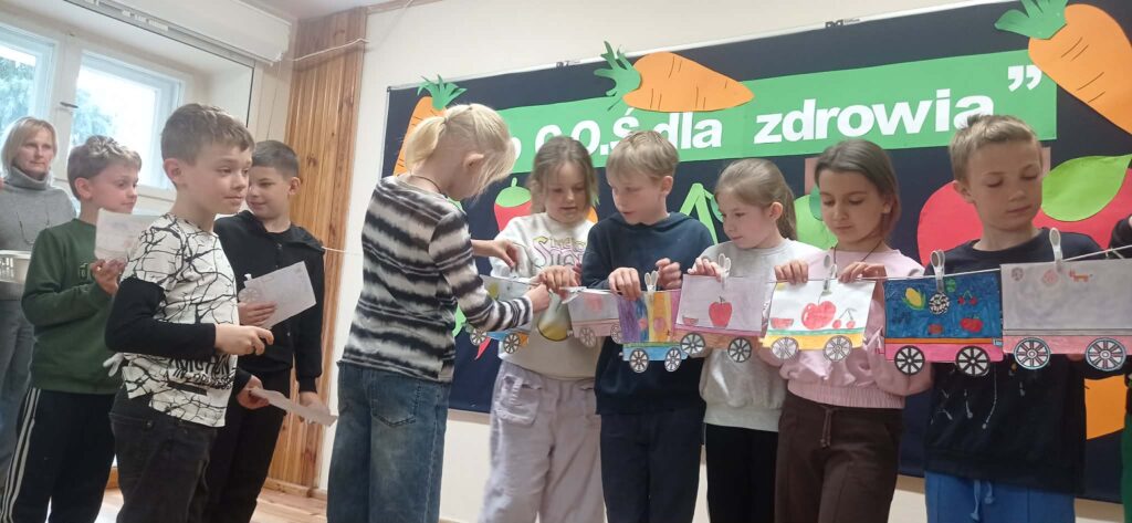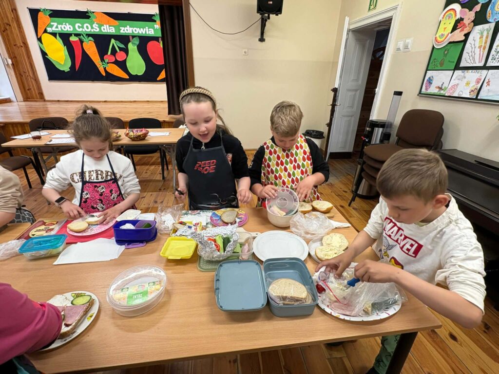 Wydarzenie rozpoczęło się od warsztatów kulinarnych, podczas których dzieci przygotowywały „kanapkowe arcydzieła”. Z kolorowych warzyw i pełnoziarnistego pieczywa powstały zdrowe, fantazyjne posiłki, które uczniowie ze smakiem wspólnie zjedli. Kolejnym punktem programu było tworzenie „Zdrowego Pociągu”. Każdy uczeń otrzymał papierowy wagon, na którym rysował swoje ulubione owoce, warzywa oraz dyscypliny sportowe. Połączone prace stworzyły długi, kolorowy skład promujący aktywny tryb życia. Na zakończenie dzieci wspólnie zaśpiewały piosenkę o zdrowym odżywianiu, udowadniając, że wiedzą, jak dbać o formę.