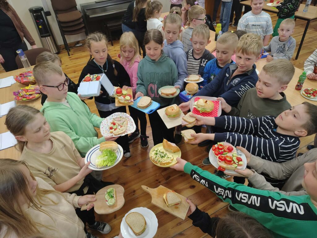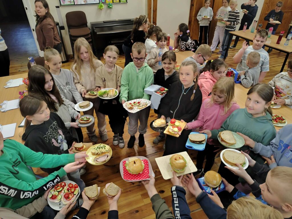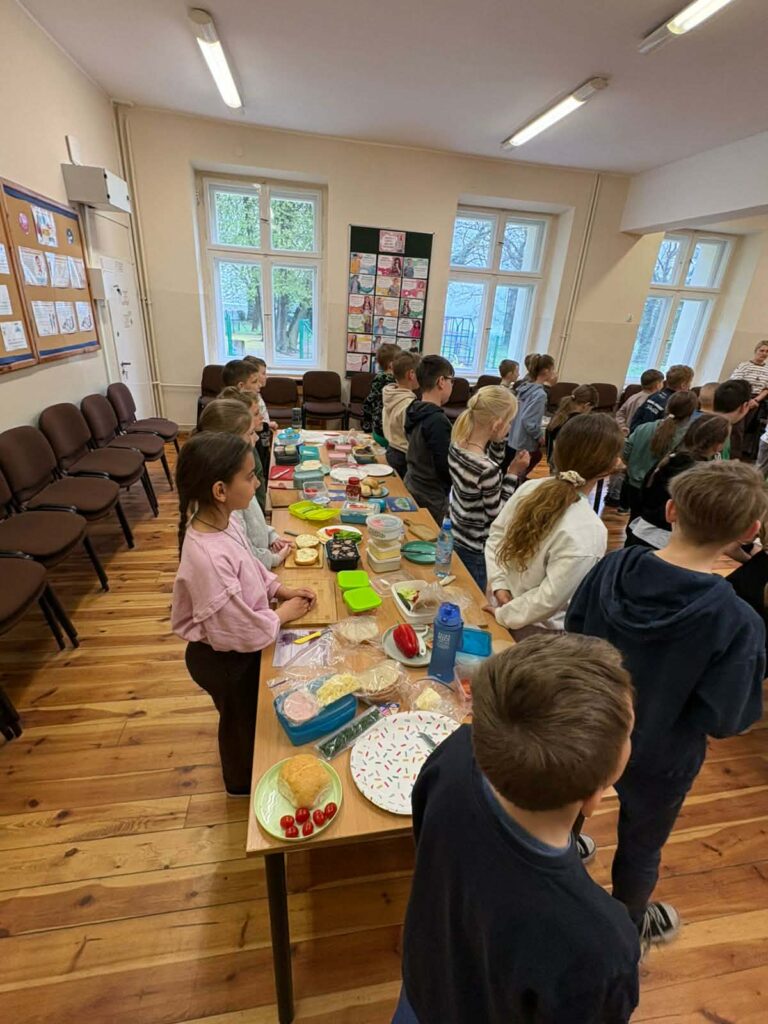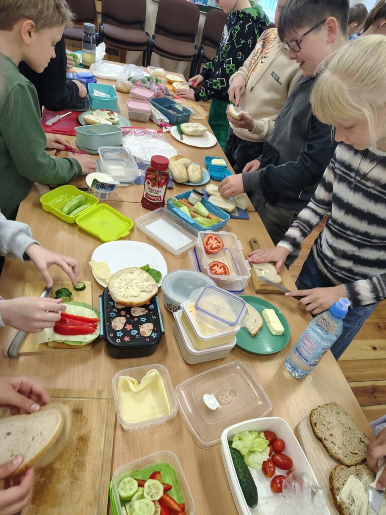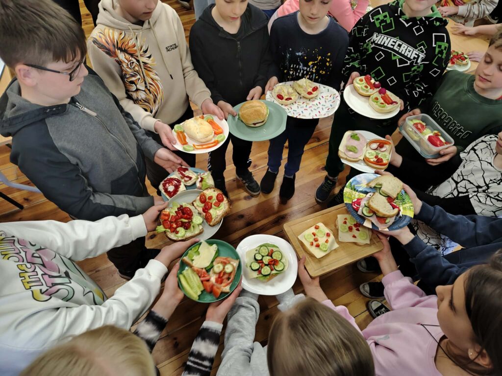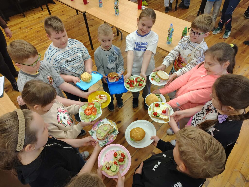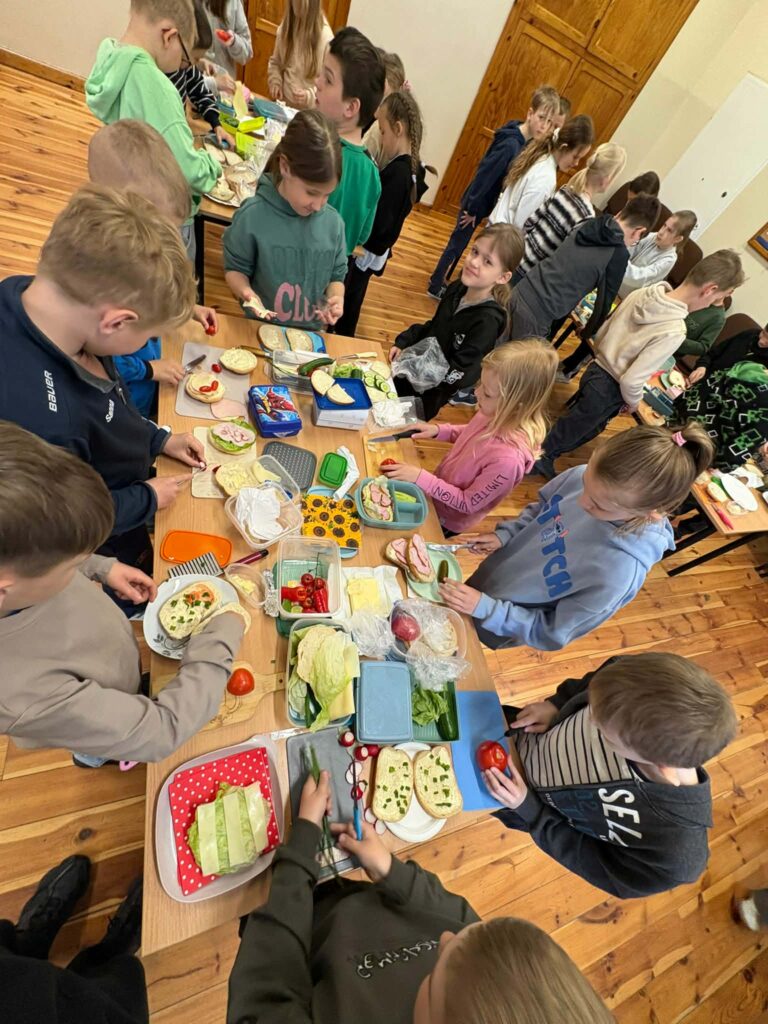 Wydarzenie rozpoczęło się od warsztatów kulinarnych, podczas których dzieci przygotowywały „kanapkowe arcydzieła”. Z kolorowych warzyw i pełnoziarnistego pieczywa powstały zdrowe, fantazyjne posiłki, które uczniowie ze smakiem wspólnie zjedli. Kolejnym punktem programu było tworzenie „Zdrowego Pociągu”. Każdy uczeń otrzymał papierowy wagon, na którym rysował swoje ulubione owoce, warzywa oraz dyscypliny sportowe. Połączone prace stworzyły długi, kolorowy skład promujący aktywny tryb życia. Na zakończenie dzieci wspólnie zaśpiewały piosenkę o zdrowym odżywianiu, udowadniając, że wiedzą, jak dbać o formę.