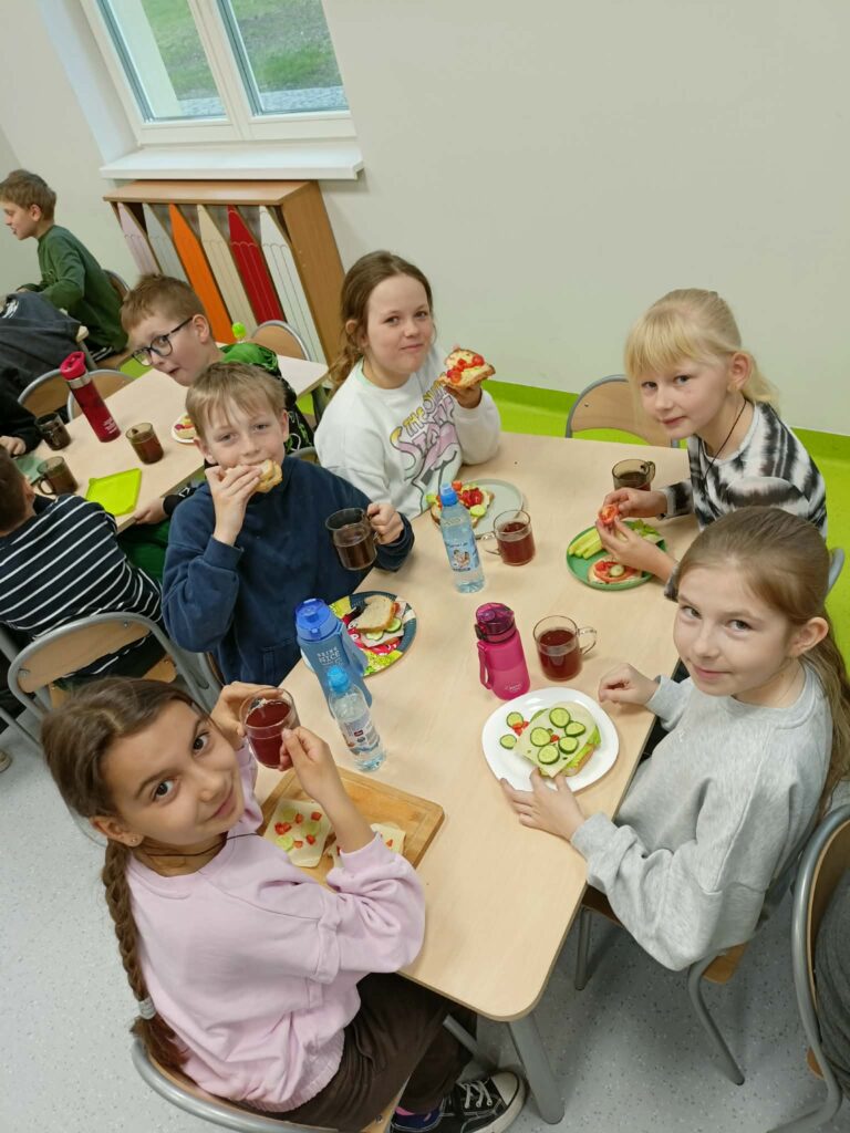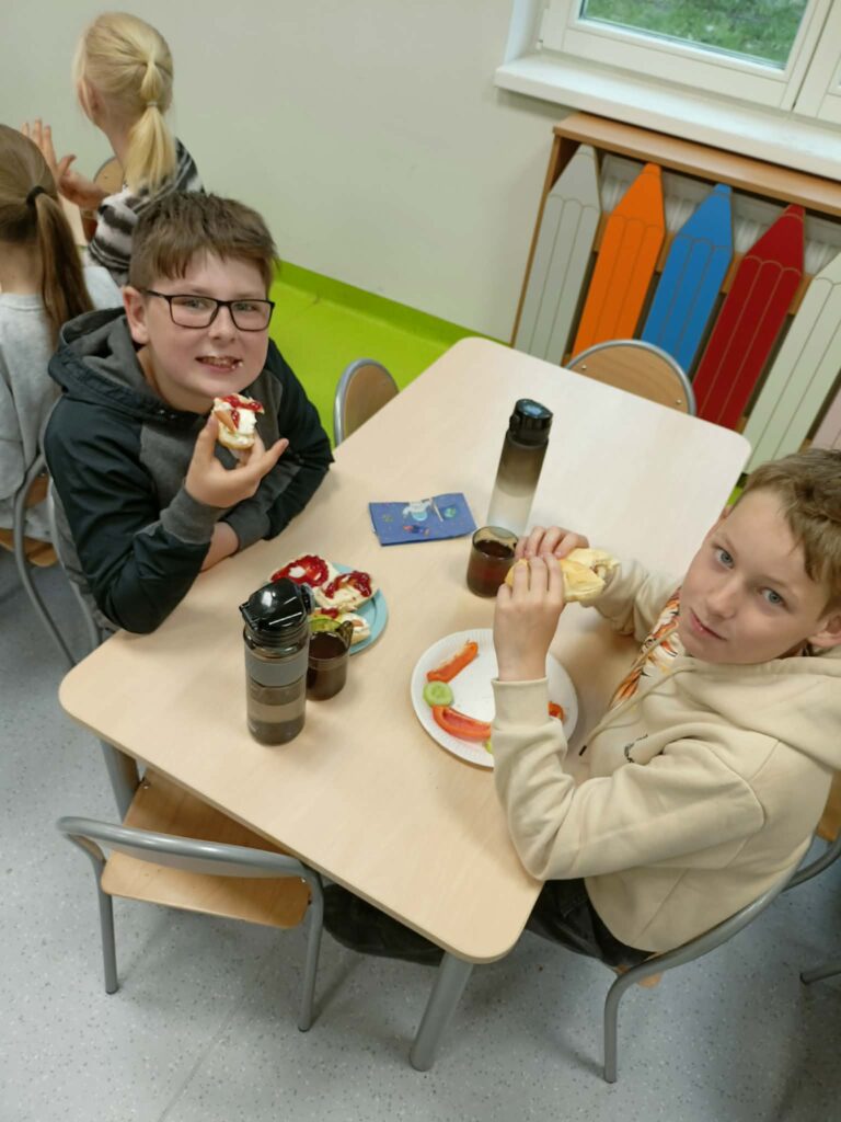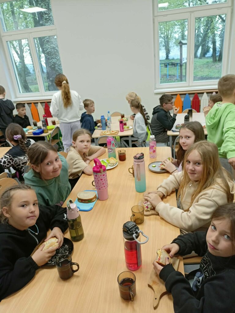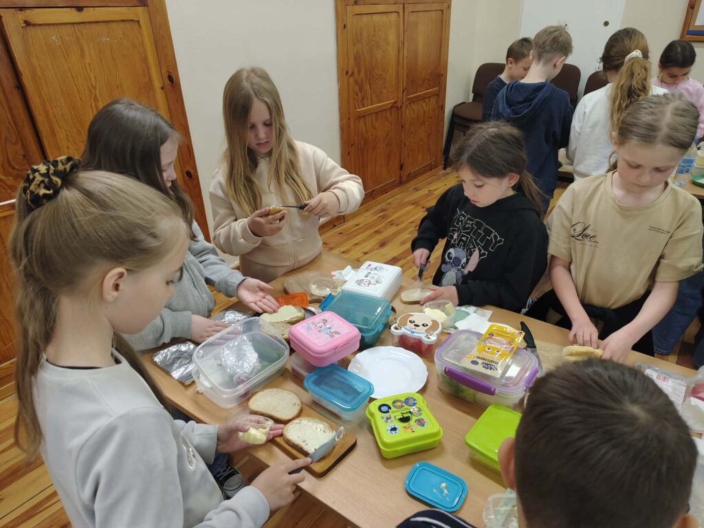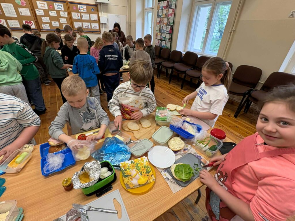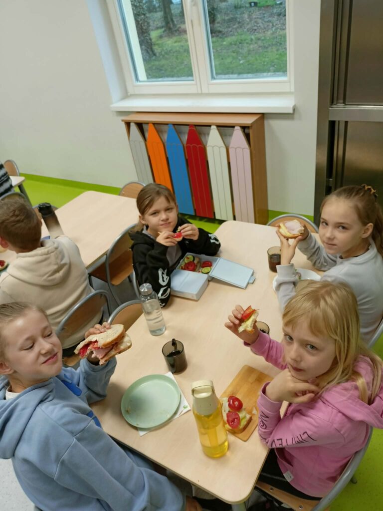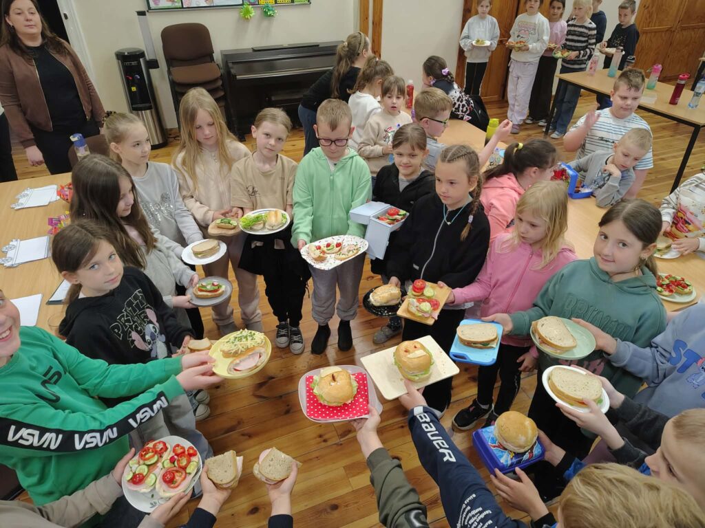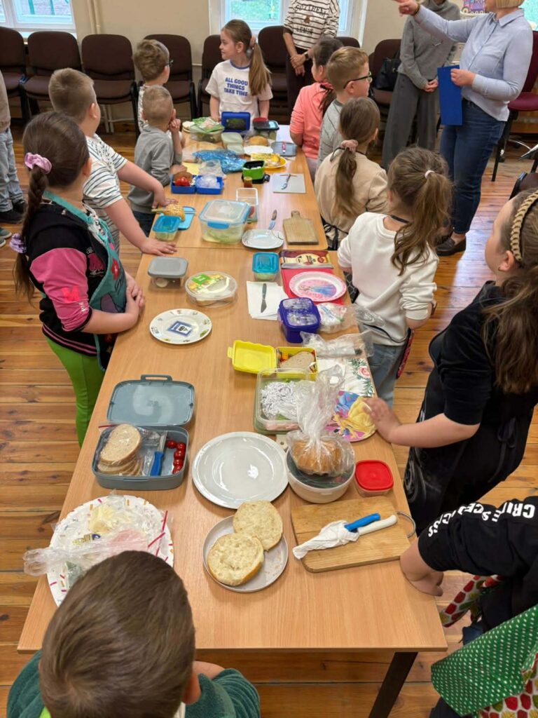 Wydarzenie rozpoczęło się od warsztatów kulinarnych, podczas których dzieci przygotowywały „kanapkowe arcydzieła”. Z kolorowych warzyw i pełnoziarnistego pieczywa powstały zdrowe, fantazyjne posiłki, które uczniowie ze smakiem wspólnie zjedli. Kolejnym punktem programu było tworzenie „Zdrowego Pociągu”. Każdy uczeń otrzymał papierowy wagon, na którym rysował swoje ulubione owoce, warzywa oraz dyscypliny sportowe. Połączone prace stworzyły długi, kolorowy skład promujący aktywny tryb życia. Na zakończenie dzieci wspólnie zaśpiewały piosenkę o zdrowym odżywianiu, udowadniając, że wiedzą, jak dbać o formę.