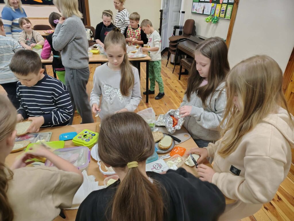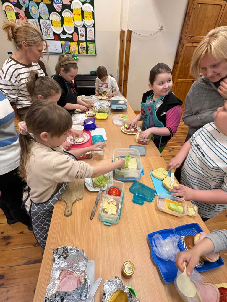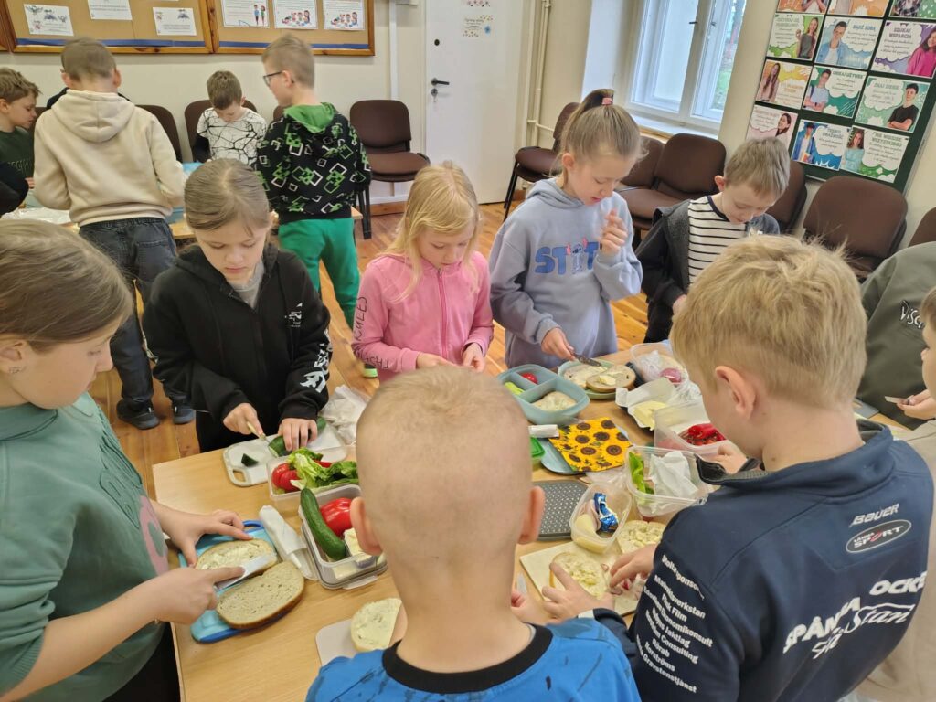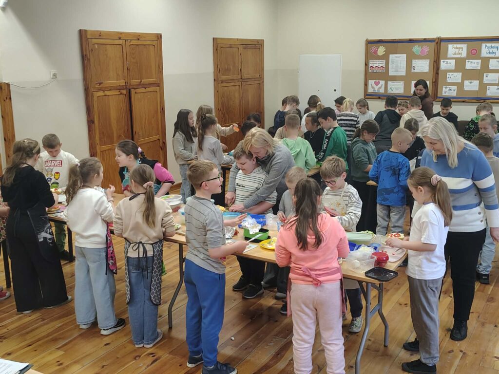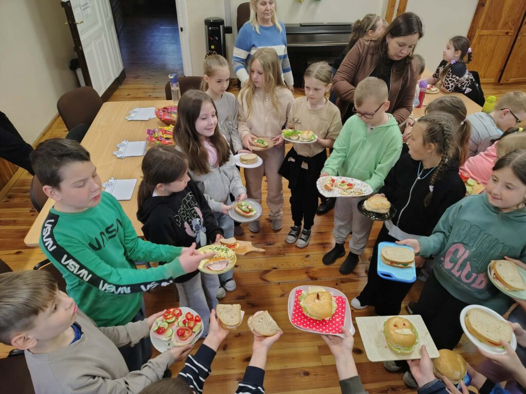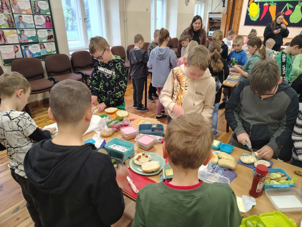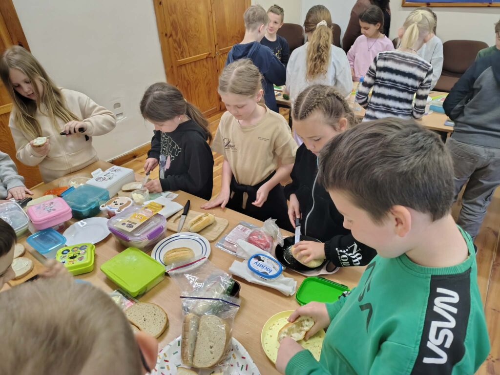 Wydarzenie rozpoczęło się od warsztatów kulinarnych, podczas których dzieci przygotowywały „kanapkowe arcydzieła”. Z kolorowych warzyw i pełnoziarnistego pieczywa powstały zdrowe, fantazyjne posiłki, które uczniowie ze smakiem wspólnie zjedli. Kolejnym punktem programu było tworzenie „Zdrowego Pociągu”. Każdy uczeń otrzymał papierowy wagon, na którym rysował swoje ulubione owoce, warzywa oraz dyscypliny sportowe. Połączone prace stworzyły długi, kolorowy skład promujący aktywny tryb życia. Na zakończenie dzieci wspólnie zaśpiewały piosenkę o zdrowym odżywianiu, udowadniając, że wiedzą, jak dbać o formę.